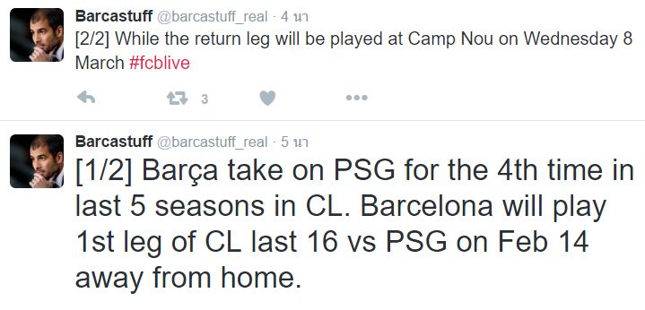 FC Barcelona กระทู้เชียร์สดยูซีแอลรอบ 16 ทีม เลคสอง vs PSG 9/3/17