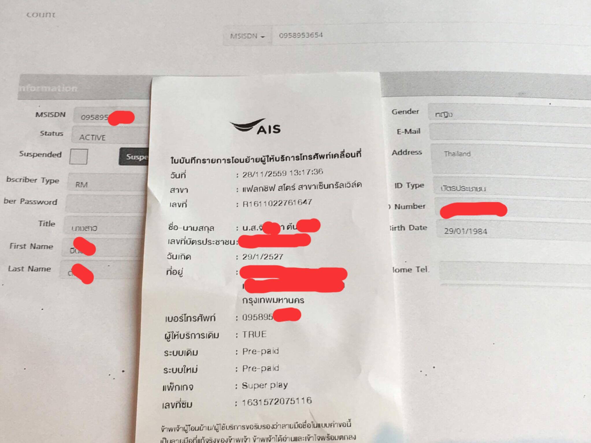 1.ทำเรื่องย้ายค่ายจาก true ไป ais วันที่28 เอกสารปริ้นชื่อ ยืนยันทั้ง2ฝ่าย เบอร์เติมเงิน