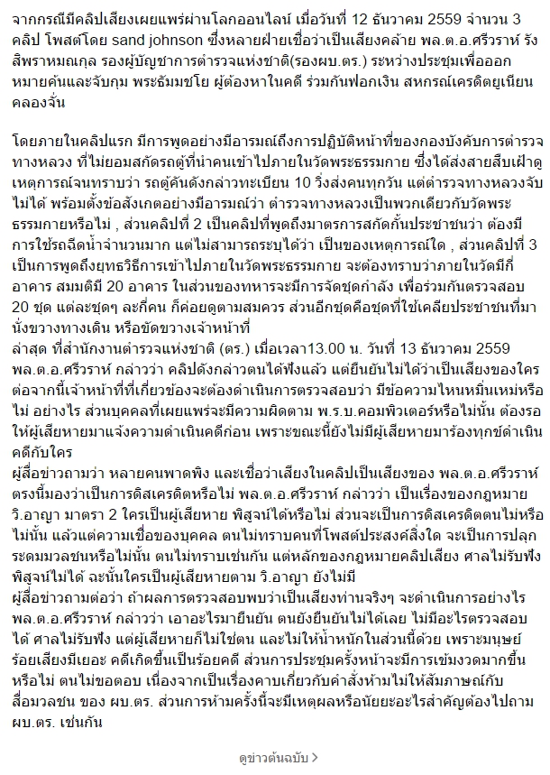 ออกข่าว ส่งกำลังตำรวจดูแลสาธุชนที่มาวัด หลังมีคลิปเสียงว่อนสั่งเอาน้ำฉีดไล่ ศรีวราห์ปฏิเสธไม่ใช่เสียงตัวเอง