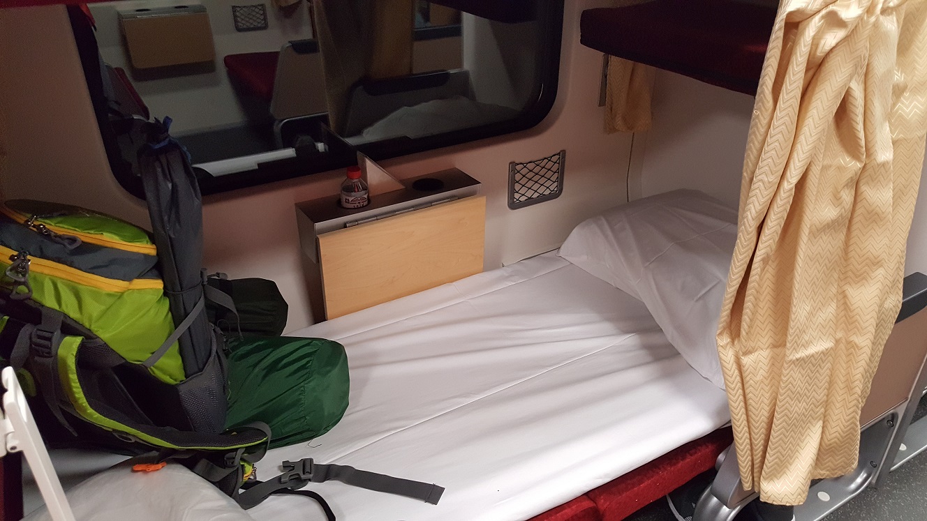 คุณลุงก็ยิ้มๆแล้วก็หยิบขวดน้ำของตัวเองขึ้นมาเปิดแล้วดื่มน้ำ จากนั้นซักพักใหญ่ๆ ประมาณ 2 ทุ่มเศษๆ เจ้าหน้าที่ประจำขบวนรถของ จขกท ก็เริ่มมาปรับเบาะนั่งให้กลายเป็นเตียงนอน คุณลุงได้เตียงบน คุณลุงก็ใจดี๊ดีหันมาถาม จขกท ก่อนว่าเราจะนอนหรือยัง เราก็เลยบอกว่านอนเลยก็ได้ครับ~ จากนั้นเจ้าหน้าที่ก็ทำการปรับที่นั่งให้กลายเป็นเตียงในพริบตาาาาาาาาา *-*