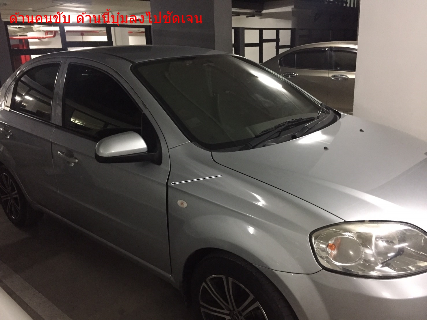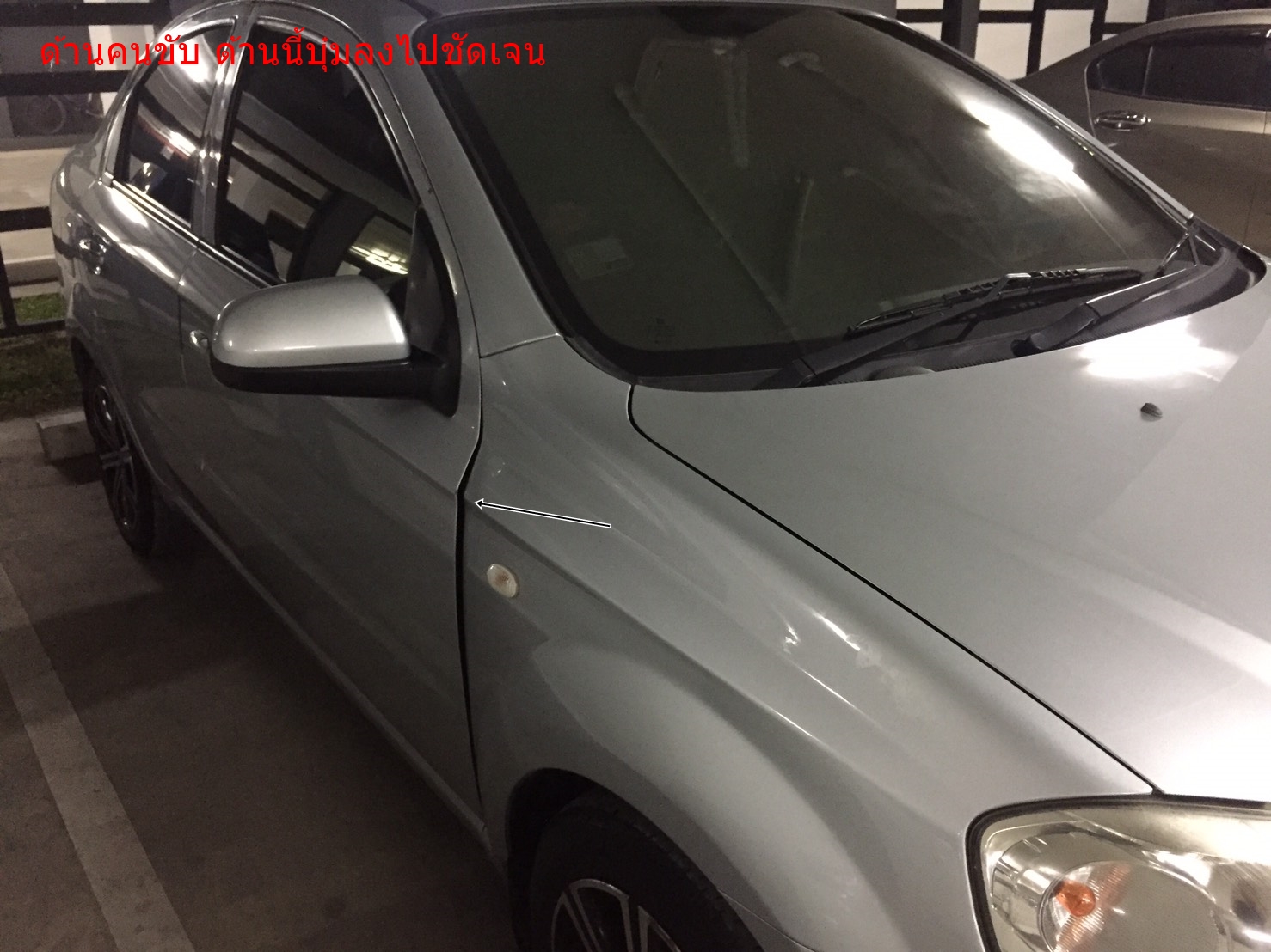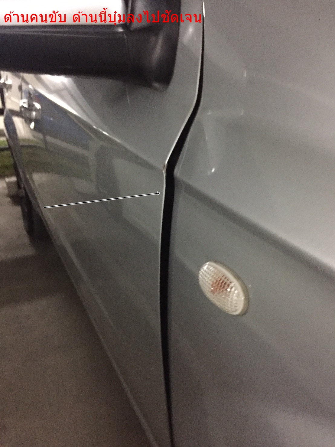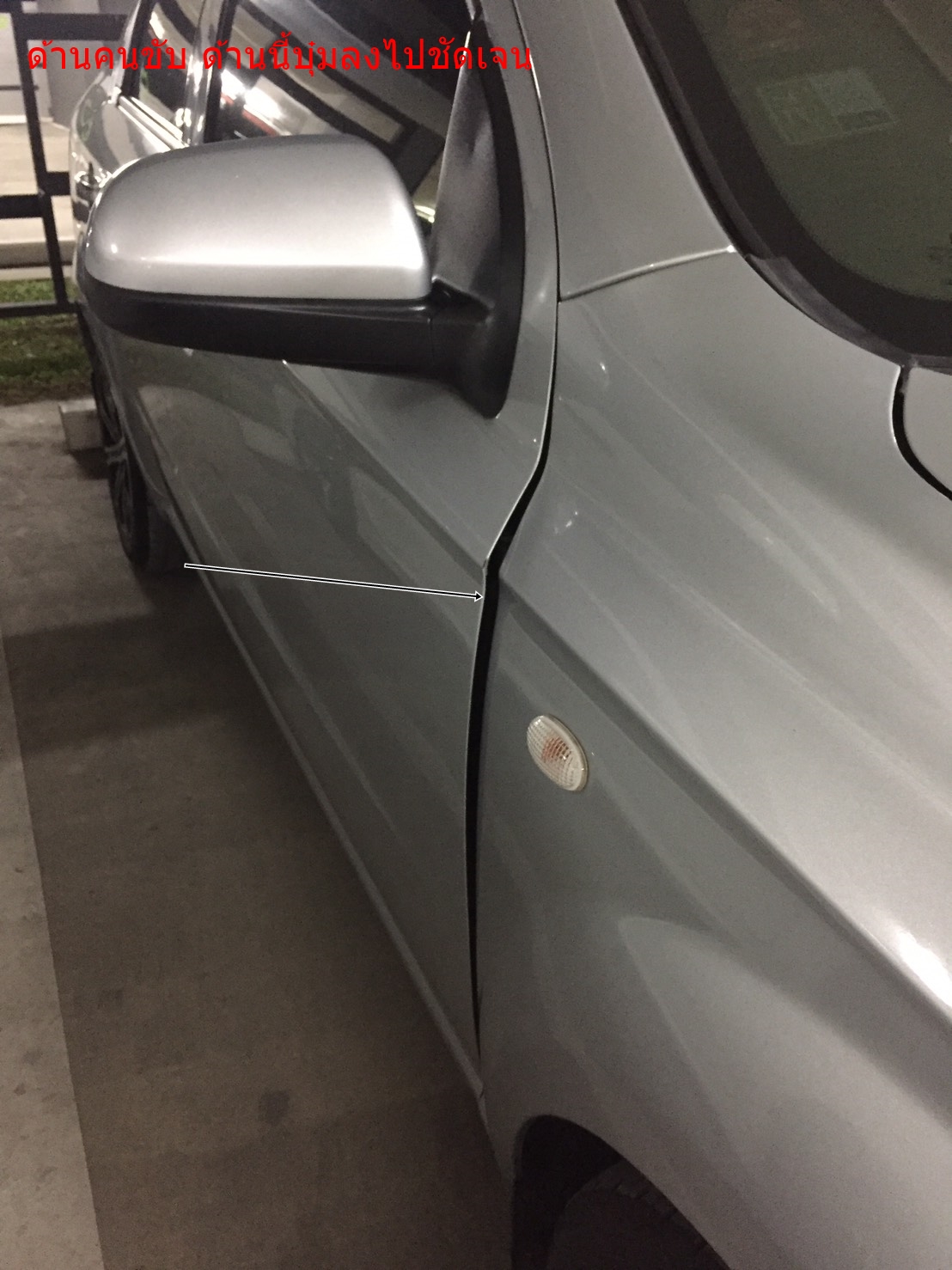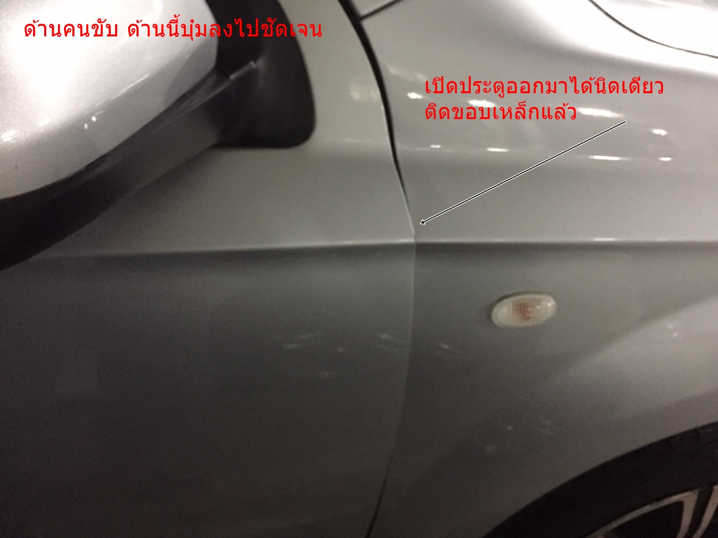 สภาพรถผมฝั่งคนขับ บังโคลนยุบลงอย่างชัดเจน