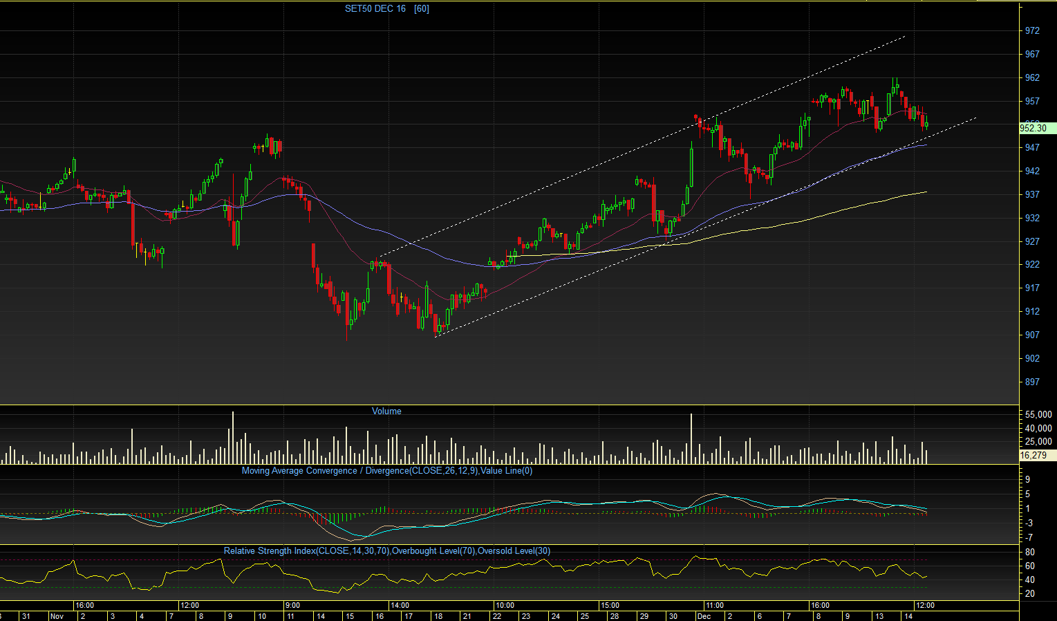 อยู่ในรูปแบบ Uptrend Channel จนในที่สุดพอมาถึงระดับ 960 จุด ดัชนีเริ่มออกอาการ เหนื่อยๆ เพลียๆ พร้อมกับเกิดสัญญาณ