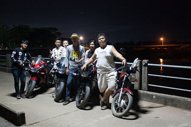 แวะล้างหน้าล้างตา พักเอนหลัง เอนไปเอนมา จะหลับซะให้ได้ ถามทางเจ้าหน้าที่ บอกว่าไปอีกหน่อยก็เข้าเขตตัวเมืองนาน้อยแล้ว ก็บึ่งรถไปอย่างไว ผ่านสะพานข้ามแม่น้ำน่าน จุดนี้มันสวยนะ แต่ผมรีบ ข้ามไปก่อนละกัน (อ้าว) เกาะไลน์รถตู้ขึ้นดอย สะดวกมาก ให้เขาเบิกทางแทนเรา แป็บเดียวขึ้นถึงยอดดอยเสมอดาว.....เฮ้ยมาไงอะ มันไม่อยู่ในแผนนะเว้ย สมองประมวลผลอยู่สองวินาที ขี่ผ่านไปหน้าตาเฉย ขอติดไว้ก่อนนะ ระหว่างทางลง เจอกลุ่ม CBR เจ้าถิ่นน้ำมันหมด เลยยกน้ำมันสำรองให้ไป ทางนั้นเลยพาไปเลี้ยงใส้ย่างกะพาไปหาที่พัก ไอ้เราก็ไป แหม่ คนอะไรใจง่ายจริงๆ