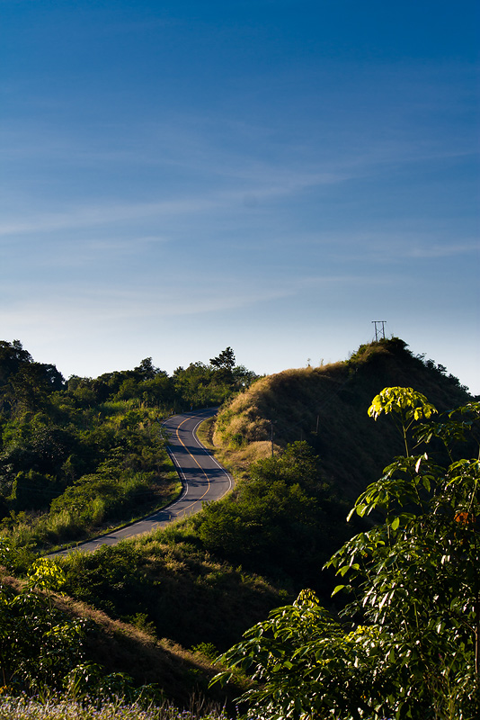 เนินนี้ผมชอบมาก ดักซุ่มดูรถโผล่ได้พอดี แถมตรงนั้นมีลานกว้าง กว้างจนผมคิดว่า ถ้ามีเต็นท์มาด้วย ผมคงจะกางนอนตรงนั้นล่ะ ไม่เข้าเมืองละ