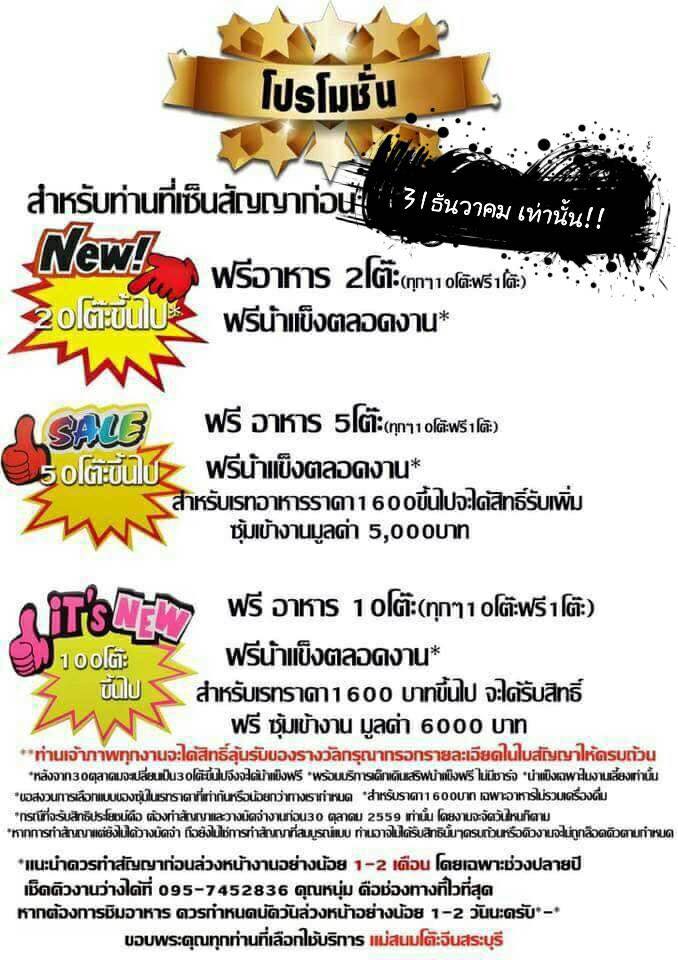อยากได้โต๊ะจีนที่เน้นคุณภาพ ไม่ทำให้แขกในและท่านเจ้าภาพผิดหวังงานผิดหวัง ประทับใจทั้งแขกและเจ้าภาพ เลือกเราสิครับ