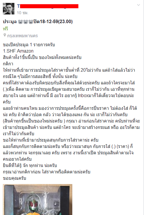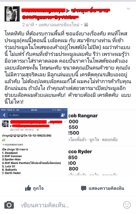 [กระทู้ประจาน] ประจานพ่อค้า กลุ่มของเล่น ใน Facebook กับการประมูลสินค้า อย่างไม่สุจริต