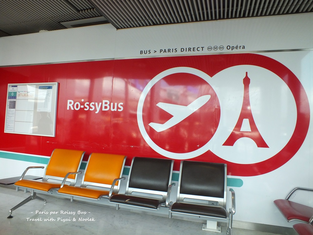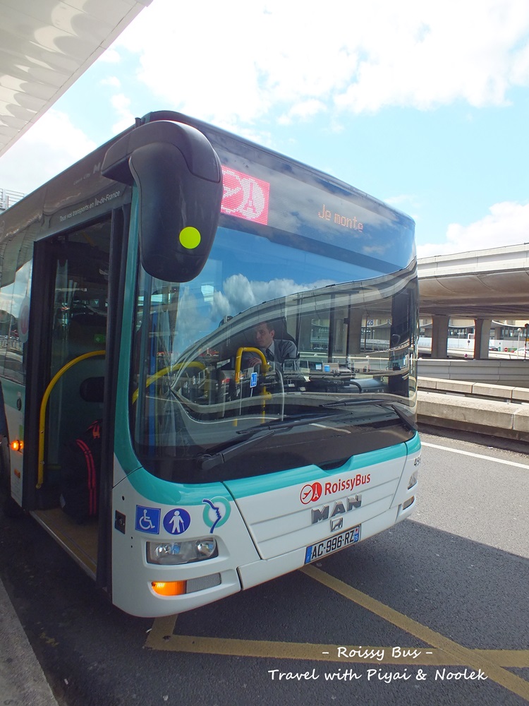 ภารกิจถัดไปก็คือการหาทางเข้าเมืองด้วยขนส่งสาธารณะ หนูเล็กและพี่ใหญ่ตัดสินใจเลือกใช้บริการรถ Roissy Bus (รัวส์ซี บุส) เป็นรถบัสที่วิ่งระหว่างสนามบินชาร์ลส์เดอโกลส์ (CDG) กับ โอเปรา (Palais Garnier) ใช้เวลาเดินทางประมาณ 75 นาที ค่าโดยสารคนละ 11 ยูโร สาเหตุที่เราเลือกใช้บริการ Roissy Bus ก็เพราะมีที่วางสัมภาระค่อนข้างสะดวก และเราสามารถนั่งไปลงสุดสายเพื่อไปต่อรถไฟใต้ดินไปยังสถานที่ที่ต้องการต่อได้ง่าย การซื้อตั๋วเดินทางสามารถซื้อผ่านตู้ได้เลย ต้องการซื้อกี่ใบใส่เงินไปให้พอหรือหากเกินเครื่องก็จะทอนมาให้