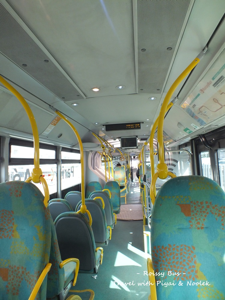 แม้ว่ารถบัสนี้จะมีสองตอนแต่คนขับสามารถขับเหวี่ยงซ้าย-ขวาพองามให้เรารู้สึกพลิ้วได้ไม่น้อยไปกว่านั่งรถเก๋ง มีบริการไวไฟฟรีให้บนรถ ทำให้สามารถเช็คอินรายงานตัวกลับไปยังคนทางบ้านได้ว่า เหยียบแผ่นดินฝรั่งเศสเป็นที่เรียบร้อยแล้วขณะที่กำลังเดินทางสู่ใจกลางกรุงปารีส