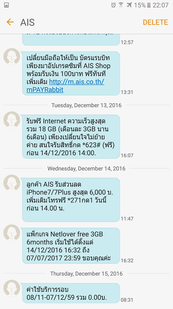 ไปติดต่อที่เคานท์เตอร์ ais เดอะมอลล์บางกะปิถึง 4 ครั้ง ทุกครั้งบอกว่าย้ายได้หมด แต่พออีก 5 วันได้รับข้อความว่าย้ายไม่สำเร็จแถมยังมาเพิ่มโปร อินเตอร์เนตให้โดยที่ยังไม่ได้กดยอมรับ แล้วกลายเป็นทำให้เราติดสัญญา ไปอีก 6 เดือน ครั้งล่าสุดจนท.แจ้งว่าสามารถยกเลิกสัญญาได้และให้จ่ายค่าบริการล่วงหน้าเพื่อไม่ให้เหลือยอดค้างชำระตอนที่ทำการย้าย แต่สุดท้ายก็มี sms จาก true มาบอกว่า ais ปฏิเสธการย้ายเนื่องจากติดสัญญา
