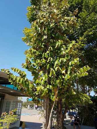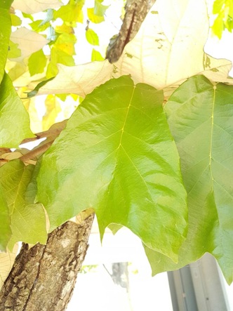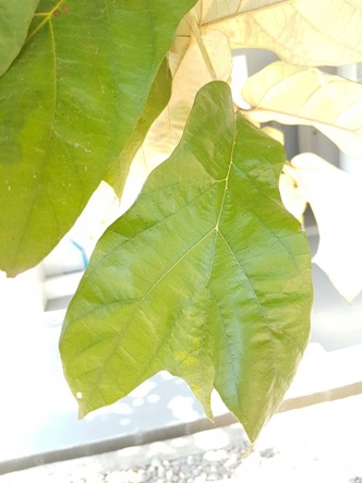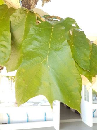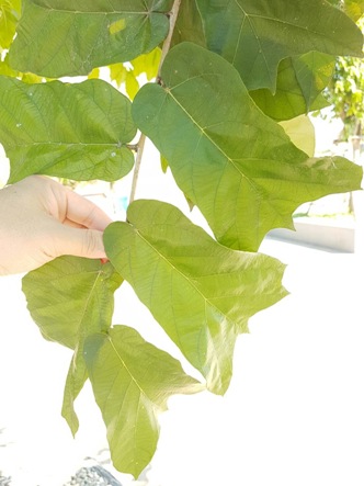 ขอสอบถาม จากรูปพอทราบชื่อของต้นไม้หรือไม่ครับ ขนาดของใบ ใหญ่ประมาณแค่ฝ่ามือ ลักษณะของลูก เวลาออก ตัวลูกจะคล้ายลักษณะแบบของลูกต้นไทรใบสัก ออกที่ปลายกิ่ง มีสีเขียว กลมๆ ลูกเล็กๆ ครับ ขอบคุณครับ