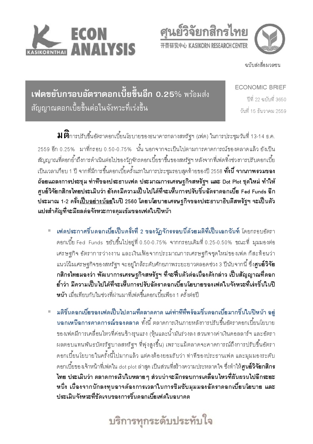เฟดขยับกรอบอตัราดอกเบี้ยขึ้นอีก 0.25% พร้อมส่ง สัญญาณดอกเบี้ยขึ้นต่อในจังหวะที่เร่งขึ้น