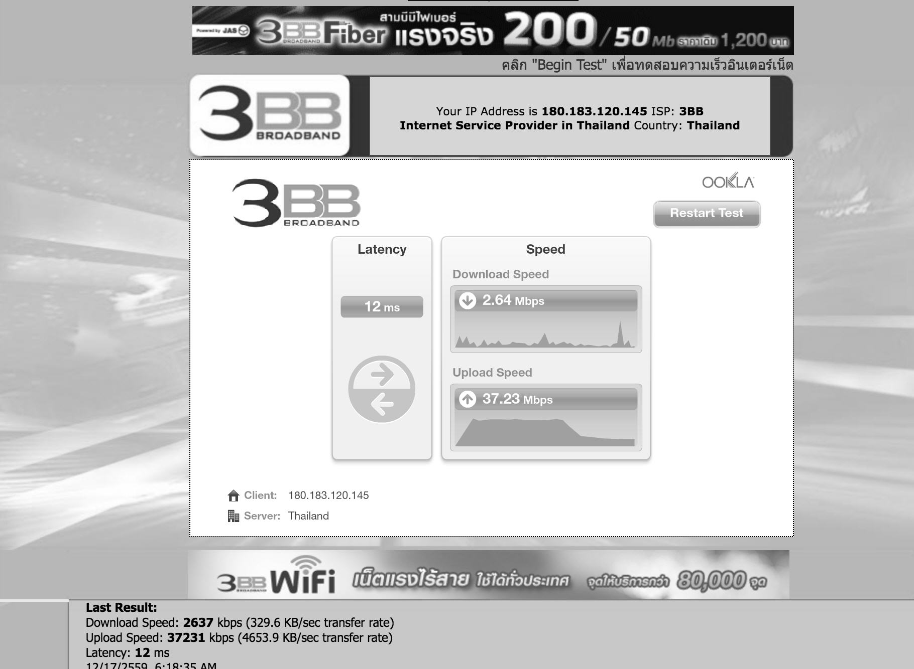 3bb fttx 200/50 ช้ามาก 17/12/2016 ช่วงเวลา 6.00 น. เป็นต้นไป