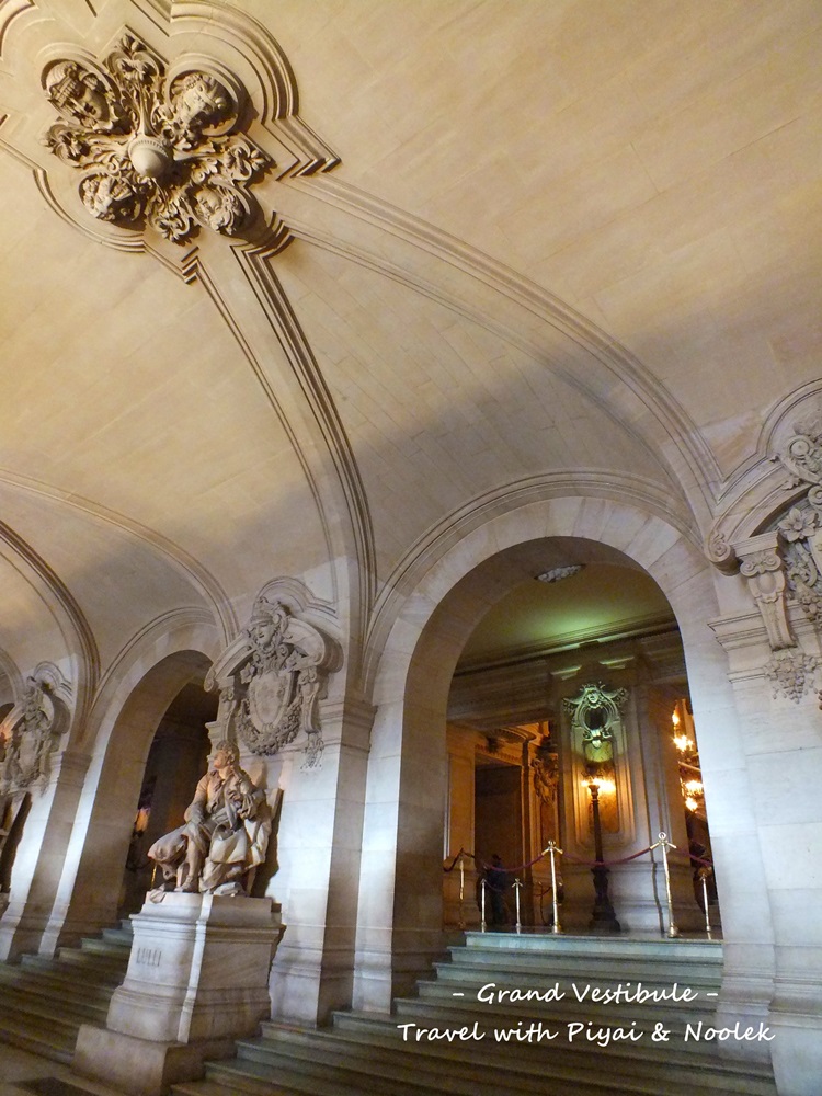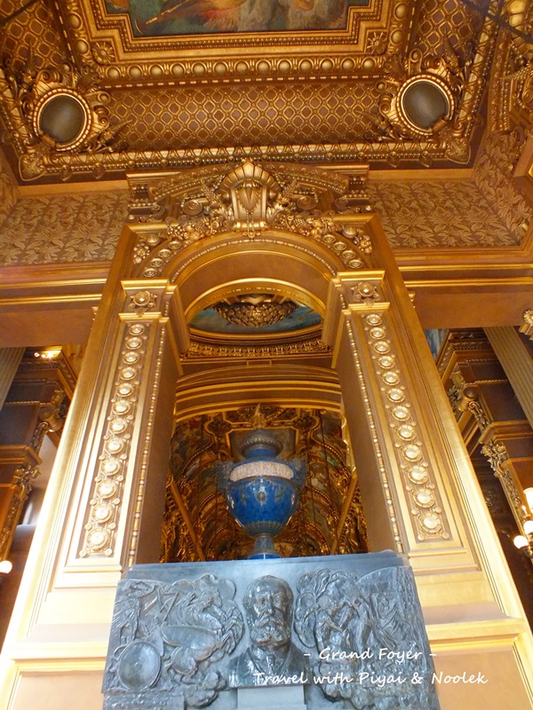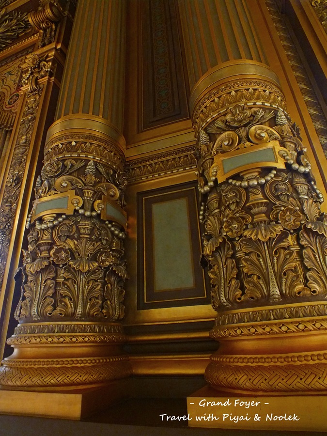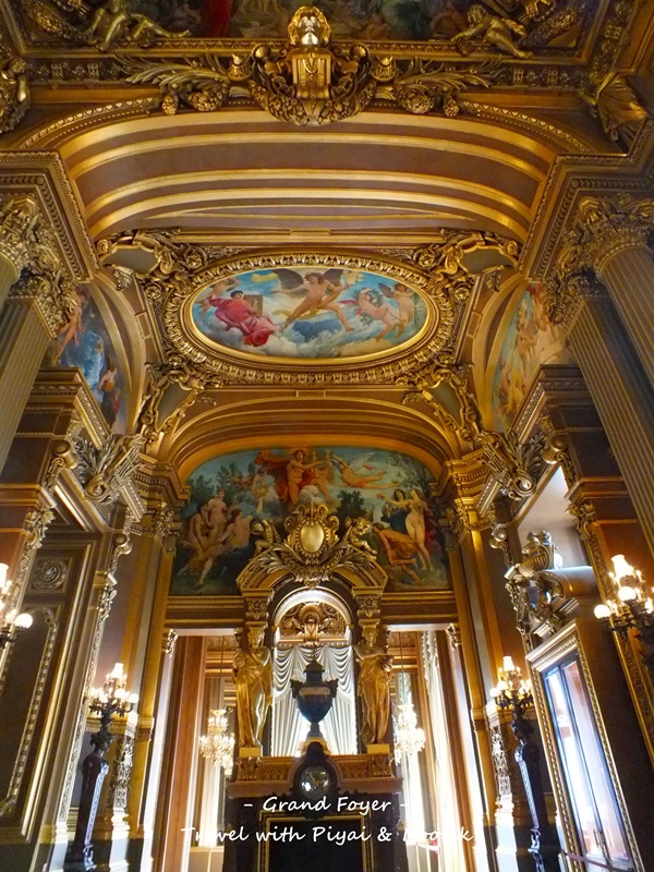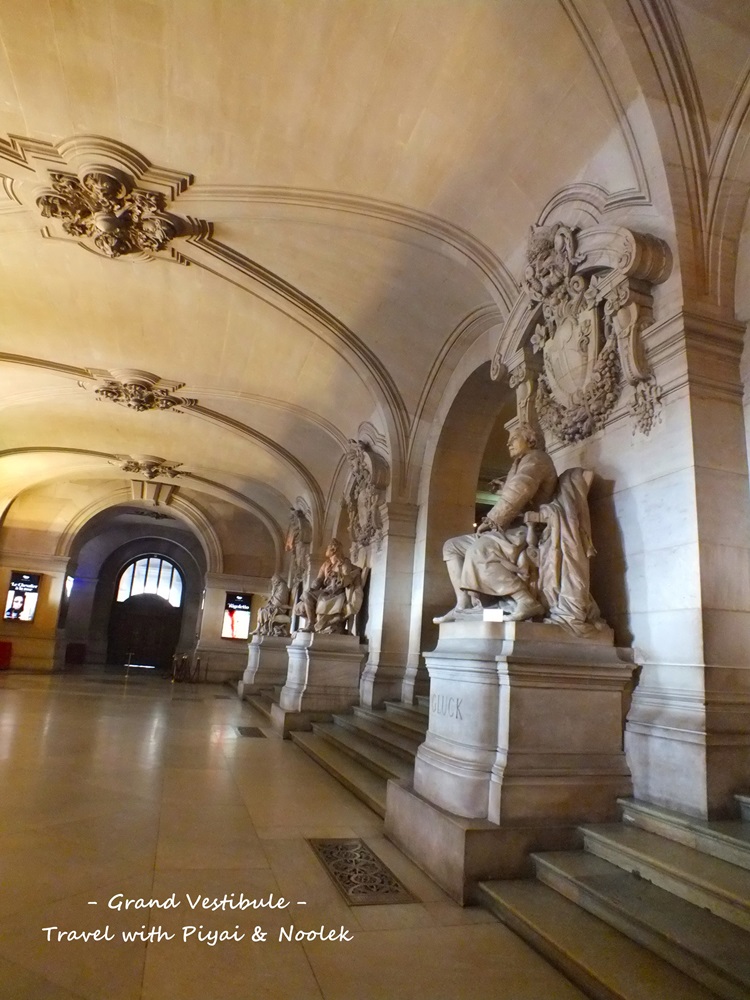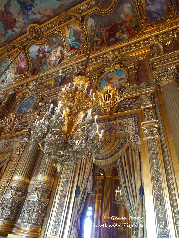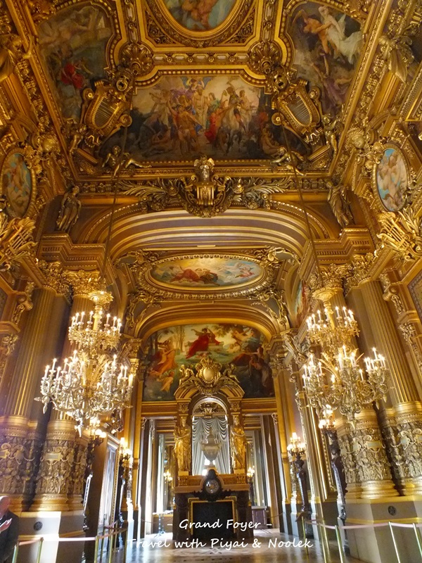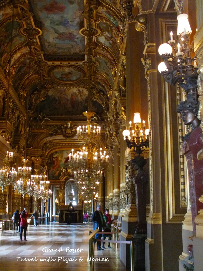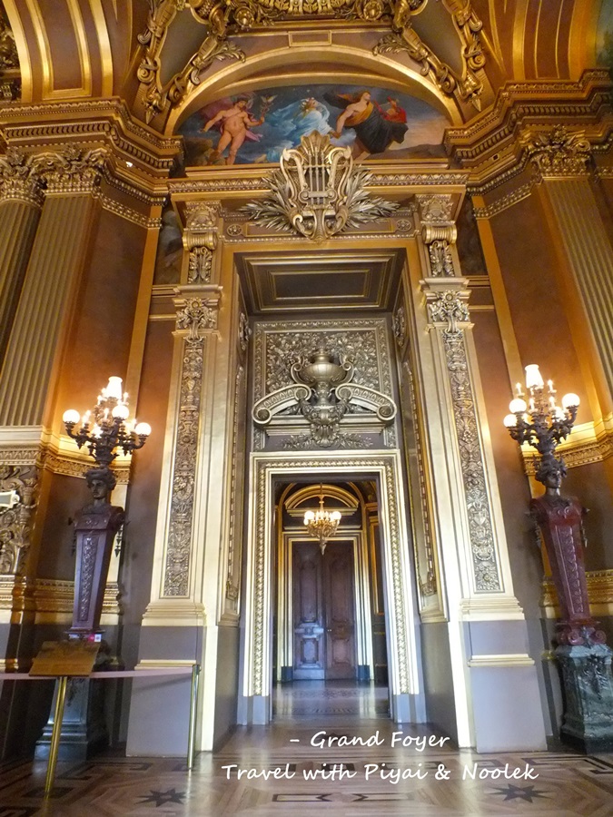 ได้เวลาไปกันต่อแล้วค่ะ หนูเล็กจะขอพาไปต่อถ้าเตรียมอกเตรียมใจพร้อมแล้วเราไปชมอีกไฮไลต์หนึ่งที่พลาดไม่ได้ด้วยประการทั้งปวงและที่นี่เป็นสุดโปรดปรานของหนูเล็ก นั่นคือ ห้องโถงเอก (Grand Foyer)เมื่อก้าวเข้าไปจะรู้สึกได้ถึงความโอ่โถงกว้างขวางสุดลูกหูลูกตาของห้องนี้นั่นเป็นเพราะลูกเล่นของการติดกระจกและหน้าต่าง จึงทำให้ห้องดูกว้างใหญ่กว่าความเป็นจริงอย่าลืมที่จะแหงนหน้ามองภาพวาดบนเพดานซึ่งเป็นเรื่องราวประวัติศาสตร์เกี่ยวกับดนตรีที่วาดไว้อย่างวิจิตรบรรจงโคมไฟระย้ายิ่งทำให้ห้องทั้งห้องดูอลังการราวกับเดินอยู่บนแดนสวรรค์หนูเล็กเดินชื่นชมและแหงนมองมุมนั้นมุมนี้ของห้องอย่างไม่รู้เบื่อวนเวียนเดินดื่มด่ำไปมาเพื่อให้สมกับที่อยากมาเห็นด้วยตาตนเอง