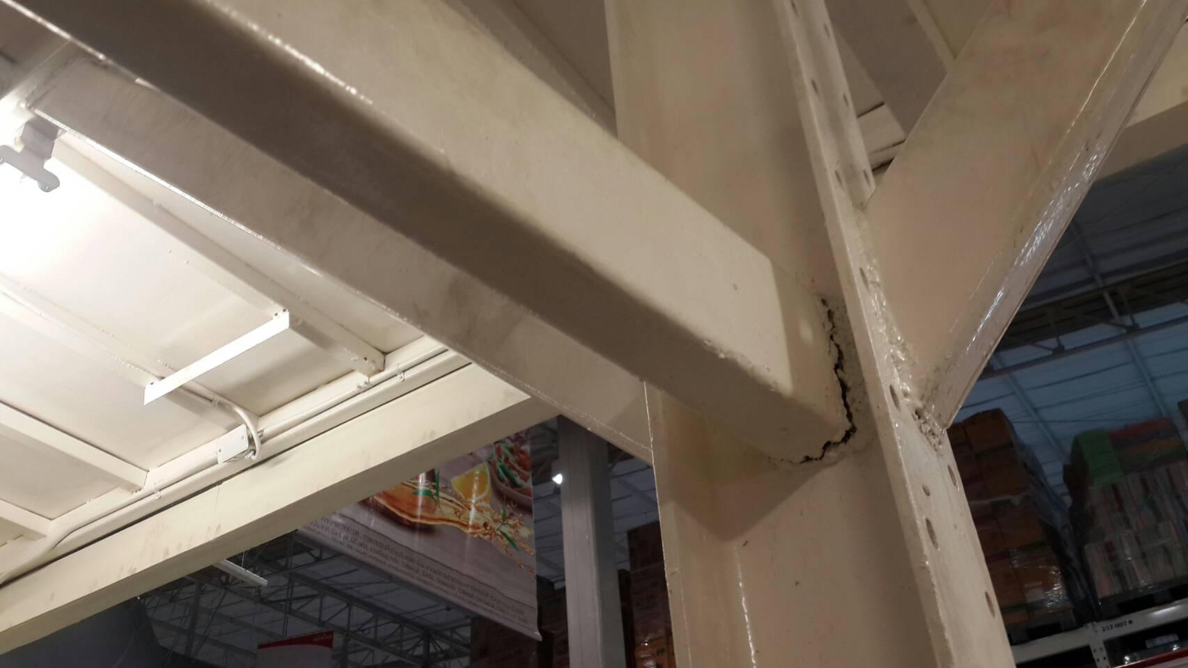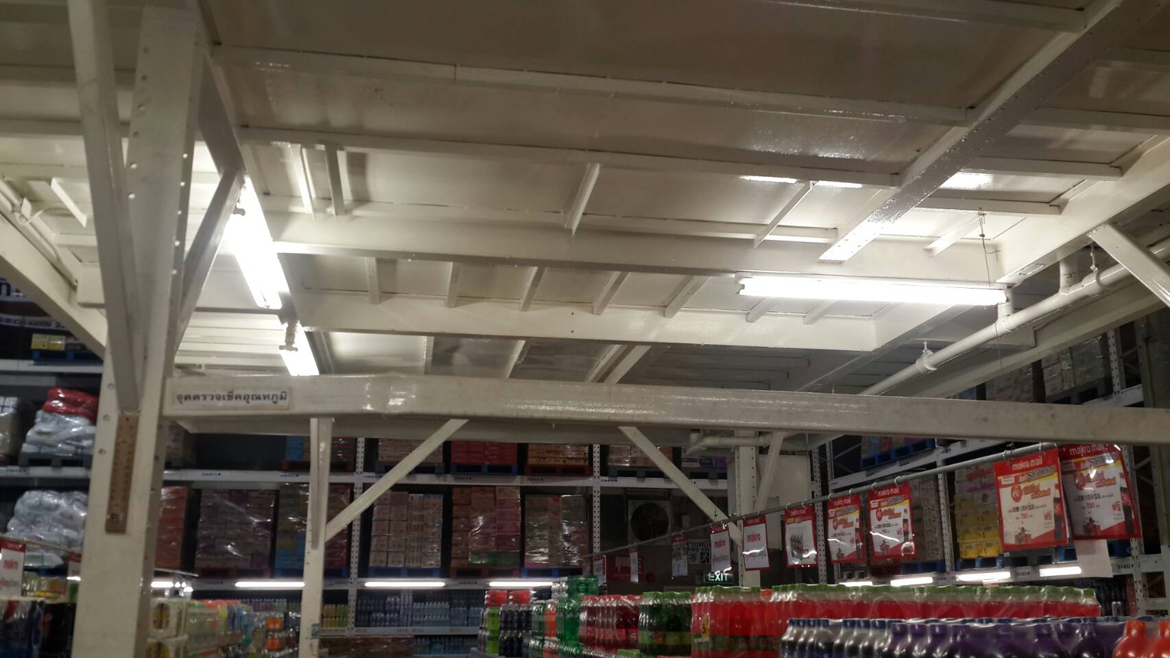 อธิบาย มันคือ คลานบริเวณแผนกน้ำนะค่ะ มันเหมือนโดนอะไรไปชนแล้วคานมันเกิดอาการงอ แล้วมีรอยแตกราวแบบนี้ เราเห็นเรานี้ตกใจเลยค่ะเพราะไม่รู้ว่าคานนี้แบกอะไรไว้บ้าง ถามพนักงานน้องบอกว่า ผจก.รับทราบแล้วแต่ก็ไม่เห็นทำไร เออดีค่ะ รอมันล้มมาก่อนดีไหม