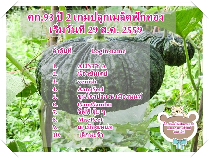 🎼*🎷*🎸*🎻*💃*...ประกาศปิดคก. 93 ปี 2 เกมเพาะปลูกเมล็ดฟักทอง... *💃*🎻*🎸*🎷*🎼