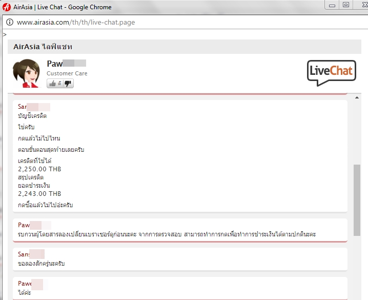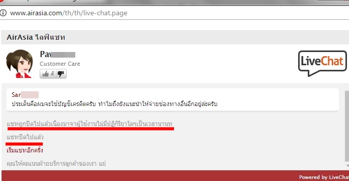 เลยติดใจ Live Chat พอมาลองกับ Airasia ดู เทียบกันไม่ได้เลย ผิดหวังมาก