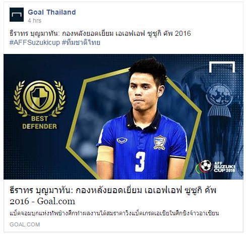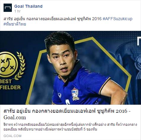 ESPN สื่อชื่อดังระดับโลก ได้เปิดเผย 11 รายชื่อนักเตะทีมยอดเยี่ยม AFF Suzuki Cup 2016 รอบรองชนะเลิศ ซึ่งแข้งช้างศึก ทีมชาติไทยติดไปถึง 6 คนเลยทีเดียว รายชื่อ 11 นักเตะยอดเยี่ยม AFF Suzuki Cup 2016 รอ