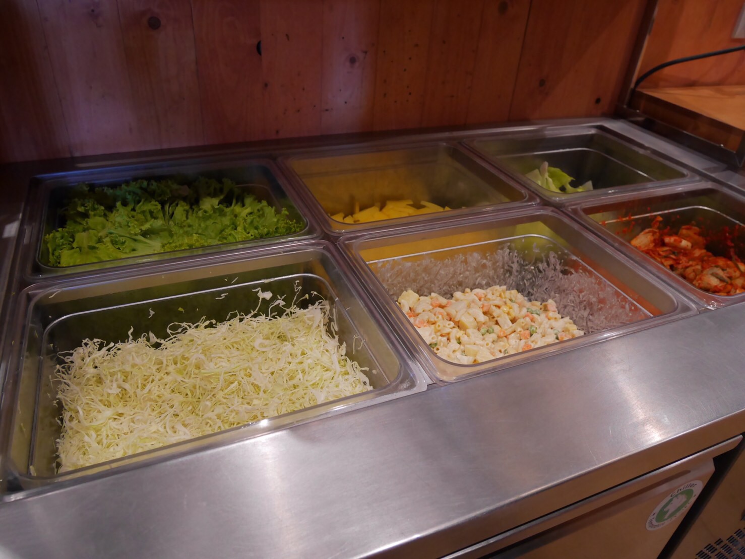 เหลือบไปเห็นบาร์เล็กๆ(ไม่รู้เรียกถูกหรือเปล่า) เป็นโซนสลัด จะมีกิมจิ มีไชเท้าดอง สลัดมักกะโรนี ให้ตักไปทานได้ตามชอบเลยค่ะ