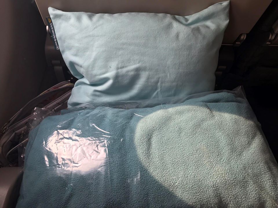 มีผ้าห่มกับหมอนแจกให้ด้วย