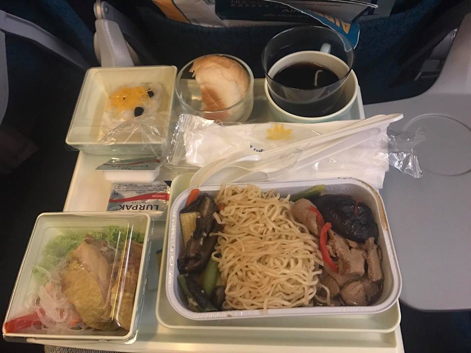 ตื่นมาล้างหน้า แปรงฟัน เตรียมตัวเดินทางกลับบางกอก แต่เรียกขึ้นเครื่องช้าอีกแล้ว เลท 20 นาทีได้ จนเราหลับไปอีกรอบ 555 คราวนี้ใช้เครื่อง A321 เหมือนเดิม เจอแจ็คพอต เด็กสาววัยประถมจอมถีบเบาะ ถีบรัวๆ แลกที่นั่งกันไปมาน่าจะเป็นพี่น้องกัน จนอดไม่ไหว กระแทกตัวนั่งแรงๆ ไปทางข้างหลัง 1 ที คราวนี้หายเงียบตลอดทางจนถึงกรุงเทพฯ (ไม่ค่อยได้ทำนิสัยไม่ดีแบบนี้นะคะ พยายามทน แต่คือนี่ถีบกันถี่จริงๆ) การแจกน้ำแจกอาหารเริ่มต้นขึ้นเหมือนเดิม เราได้เซ็ทเดิมเหมือนตอนขาจากฮานอยไปฮาเนดะ
