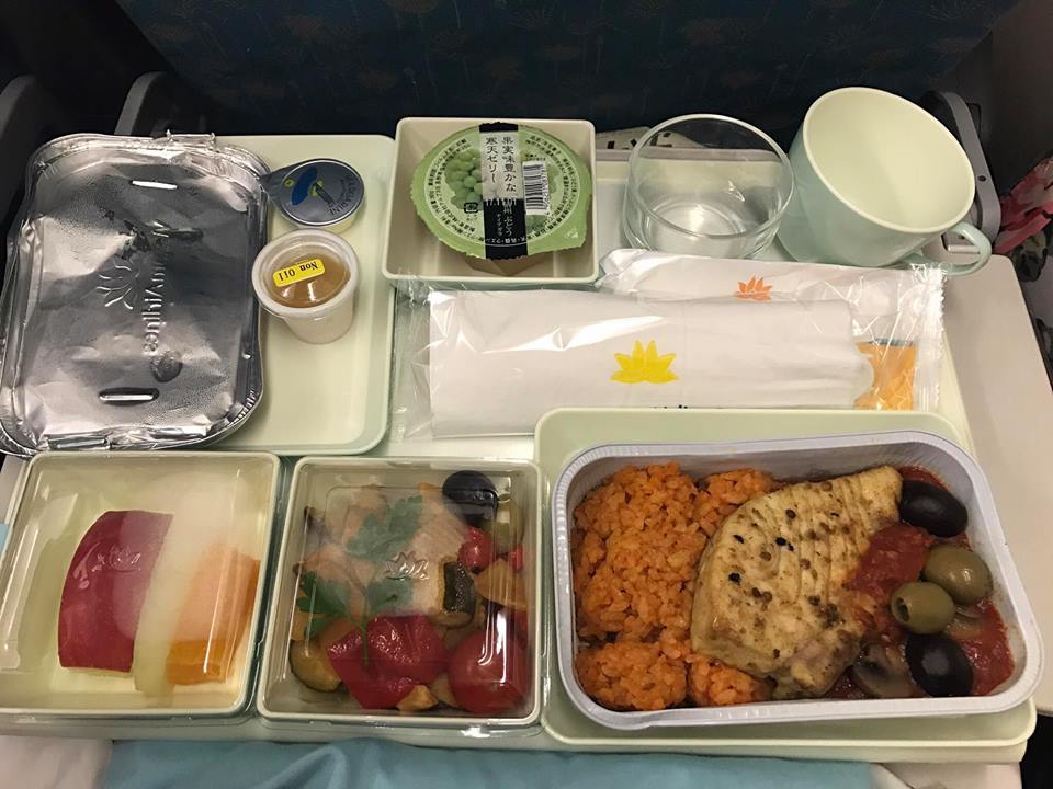 ส่วนแฟนเราได้อาหารปกติของสายการบิน เค้าจะให้เลือกระหว่างไก่กับปลา แฟนเราเลือกไก่ไป