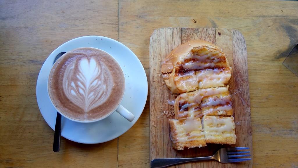 เสร็จแล้วเดินมาฝั่งตรงข้ามจะมีร้านกาแฟและเป็น Hostel ด้วย ชื่อว่า Box Tel จัดการสั่งมอคคา และขนมปังนมเนยมากิน