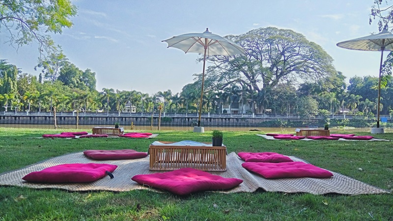 บรรยากาศช่วงเย็นดีมากกกก อากาศเริ่มหนาวแล้ว แต่มีไอแดดอุ่นๆ พอให้ร่างกายได้หายหนาวนิดนึง ช่วงที่ท้องฟ้าผลัดเปลี่ยนจากบ่ายๆ เป็นกลางคืนสีท้องฟ้าสวยมาก มองแล้วรู้สึกอบอุ่นในหัวใจ ทำให้ลืมความวุ่นวายในเมืองหลวงไปได้เยอะเลย