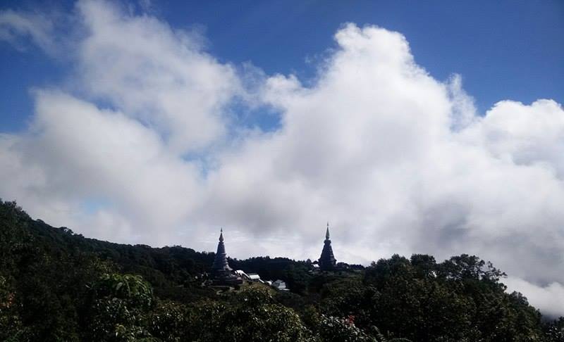 ทางเดินกลับจะเดินอ้อมไหล่เขา จะมองเห็นเจดีย์คู่มหามงคลบนดอยอินทนนท์อีกฝากได้ สวยมากๆค่ะ