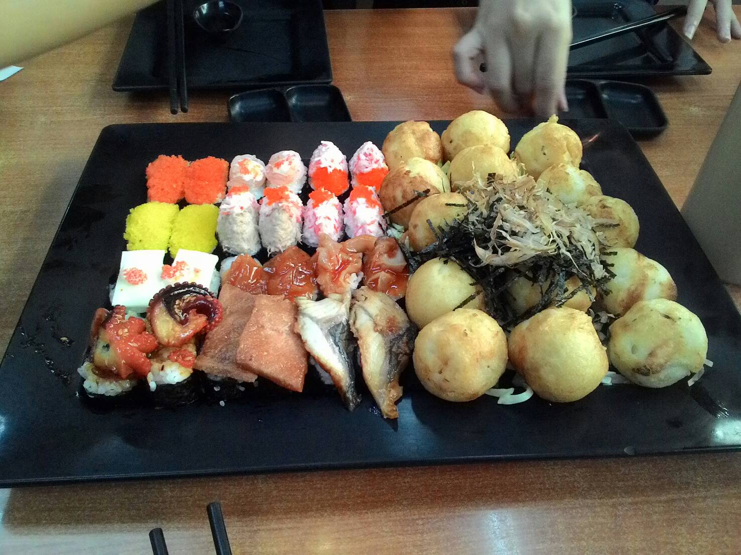 แล้วพบว่ากินไม่หมดจ้าาาาา **ต้องเป็นเพราะขนมจีนที่ตัดกำลังเราแน่เลย** แต่หันไปมองเพื่อน3,4 ที่สั่งเหมือนเรานั้นไซร้ เห้ยแกหมดได้ไงวุ้ยยย ช็อคตกทาโกะ10ลูกเพื่อนผญ.ที่รูปร่างบอกบางของเราเป็นผู้เขมือบลงไป แม่เจ้าโว๊ยยยย ทางนี้ตายตั้งแต่ลูกที่3ล้าววว ระหว่างช่วงเวลาที่ทรมานกับการฝืนกินเพื่อนหมายเลข6 ก็ขี่ม้าขาวมาช่วยเราค่ะ แต่ก็ไม่สามารถจริงๆจบลงที่เราเรียกพนง.