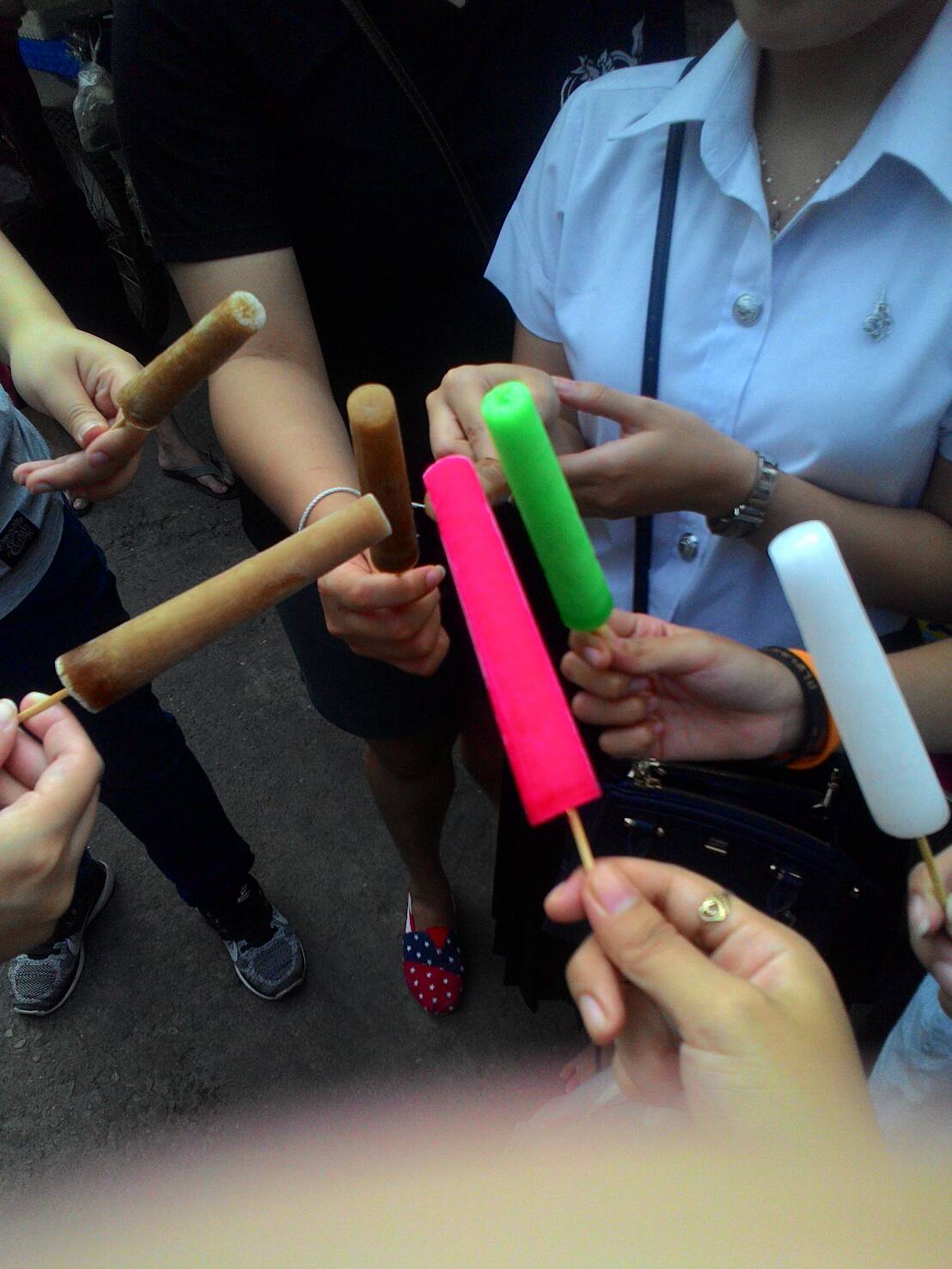หลังจากอิ่มท้องเราก็เดินทางไปอิ่มบุญกันค่ะ มุ่งหน้าไปยังวัดระฆังกันเถอะ เดินย่อยกันไปข้างทางก็มีขายของตลอดไม่ได้เงียบเหงาเหมือนแต่ก่อน คือเปลี่ยนไปม๊ากกกจากที่เคยไปล่าสุด เอ๊ะๆนั้นอะไร แข็งคารูใช่ม้ายยย ** เป็นชื่อเรียกที่เพื่อนได้ยินแล้วเงิบ ** แวะกานนนนน จัดกันไปคนละแท่ง ได้อารมณ์สมัยเด็กมากเลย [Spoil] คลิกเพื่อดูข้อความที่ซ่อนไว้