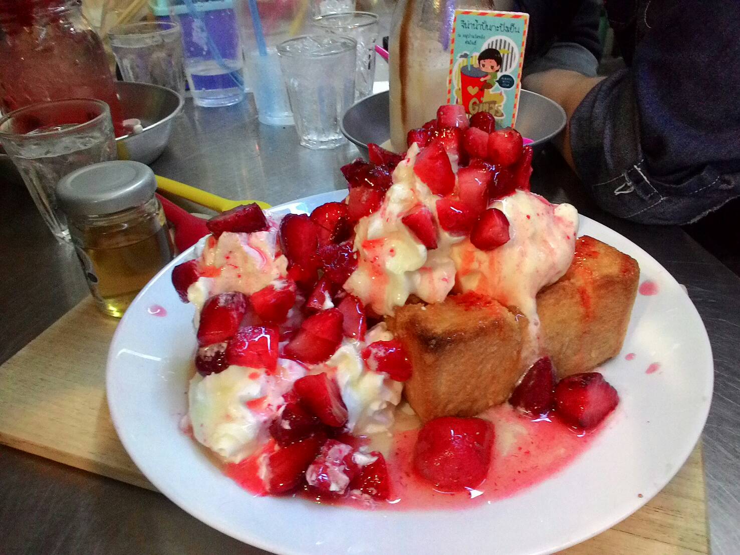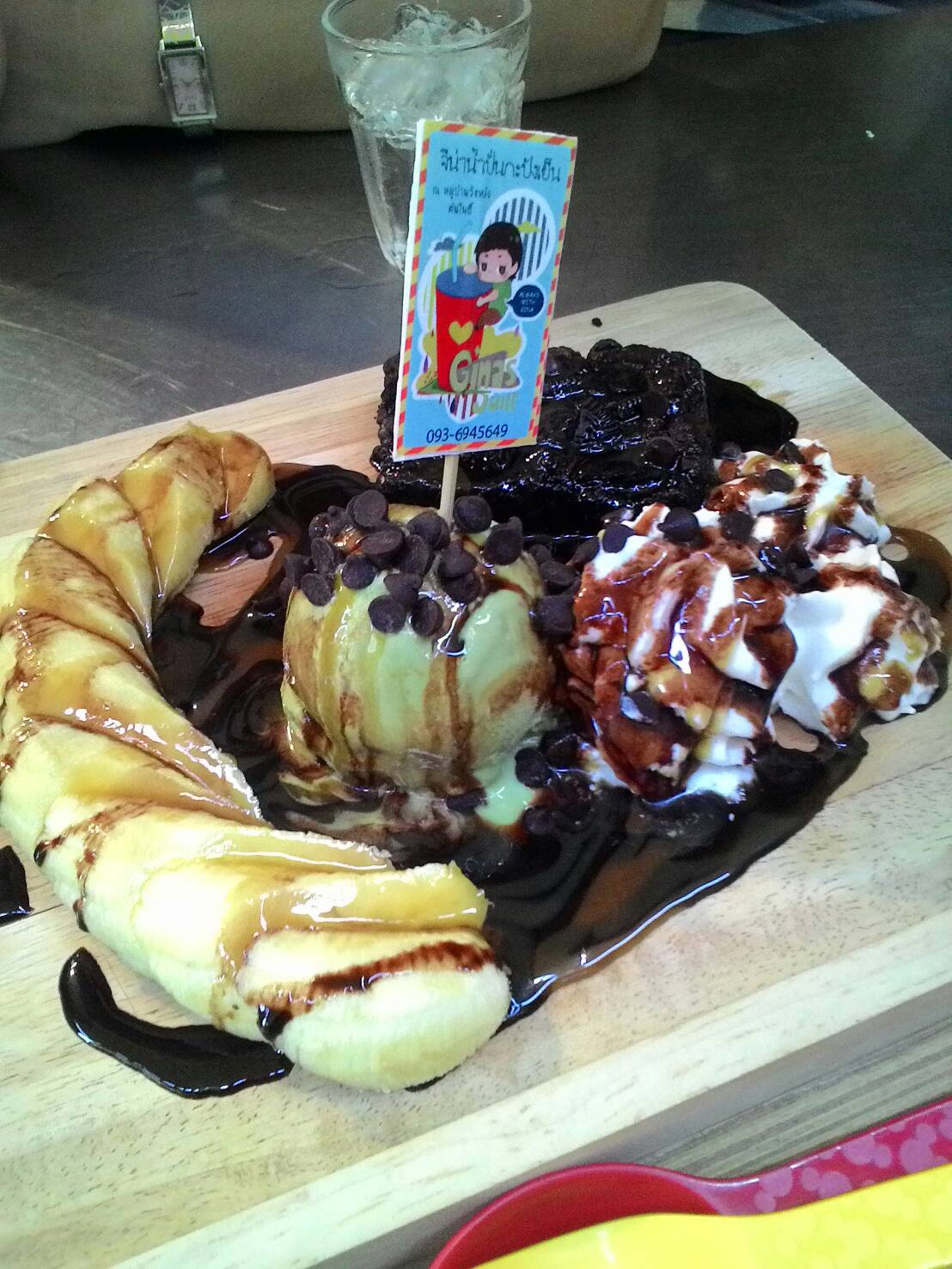 หลังจากบุญอิ่มบุญกันไปที่เรียบร้อยเราก็ย้อนกลับมาหาของหวานกินกันที่ร้านจีน่าค่ะ อยู่ในซอยต้นโพธิ์ แต่คนเต็มร้านเลยขอจองที่ไว้ พี่เดี๋ยวหนูมาไปเดินแต๊ดแต๋กันก่อนแล้วค่อยกลับมา กลับมากันจัดกันไปเบาๆเป็นการล้างปาก ระหว่างรอก็หยิบเอาเกมส์มาเล่นกรี๊ดกร๊าดกันไปด้วยความตื่นเต้น ไม่ได้ดูอายุกันเลยจังหวะที่เด้งออกเพื่อนเราตื่นเต้นจนถึงกับทำน้ำหกรดตัวเอง 55555 [Spoil] คลิกเพื่อดูข้อความที่ซ่อนไว้ ก็นั่งเล่นโวยวายกันไปจนขนมมา [Spoil] คลิกเพื่อดูข้อความที่ซ่อนไว้