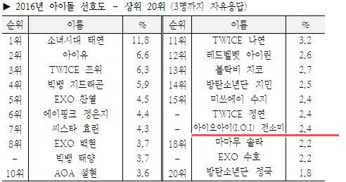 จากผลสำรวจ Gallup 2016 ไอดอลที่เป็นที่นิยมที่สุด ท็อป 20 (โหวตโดยช่วงอายุ 20 ปี)