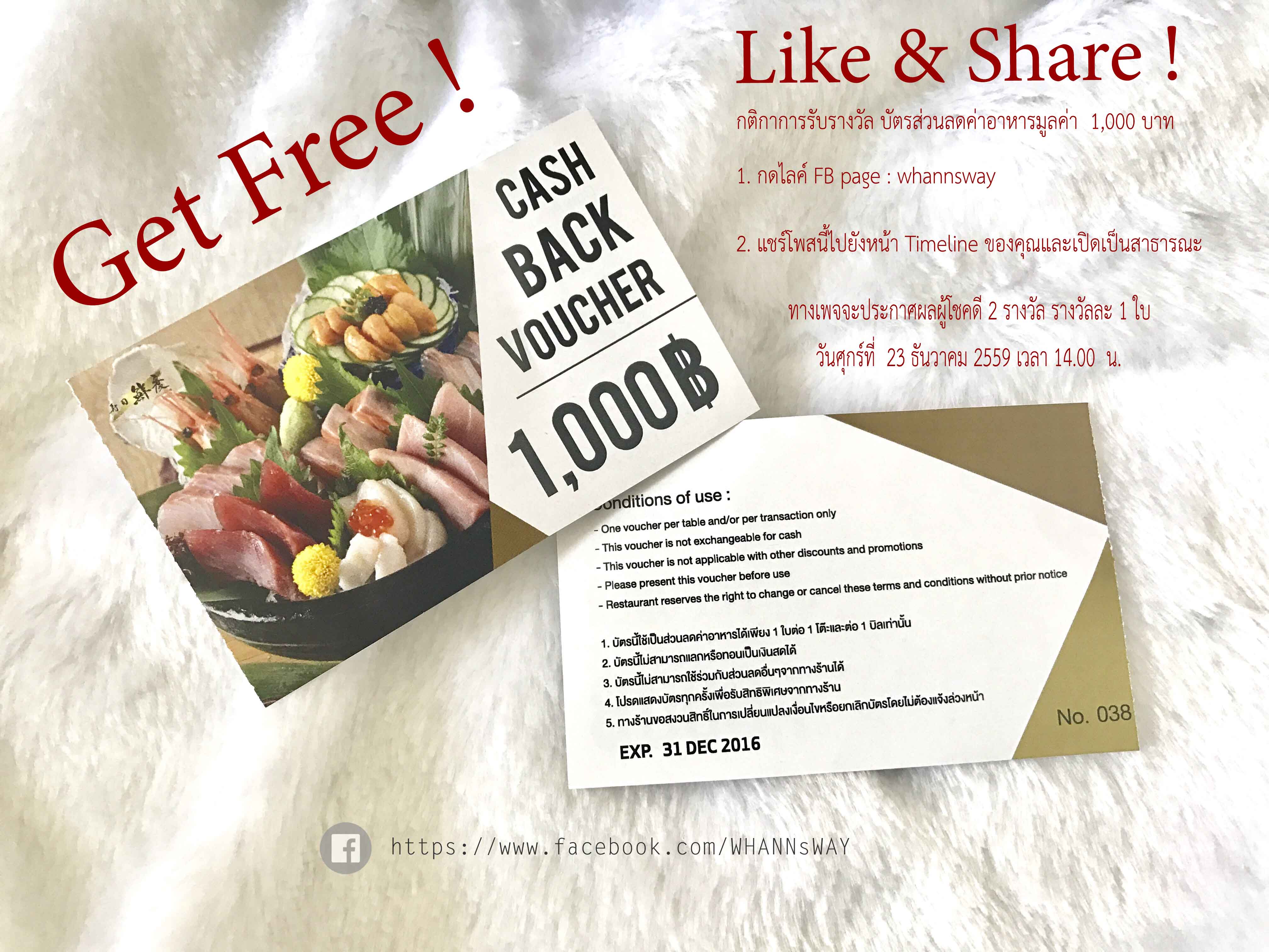Voucher ส่วนลดมาใบละ 1000 เอามาแจกเพื่อนๆ ในเพจของตัวองนี่แหล่ะค่ะ หากใครอยากได้บัตรส่วนลด ก็ลองไปเล่นเกมส์กับเราได้ในเพจนะค่ะ