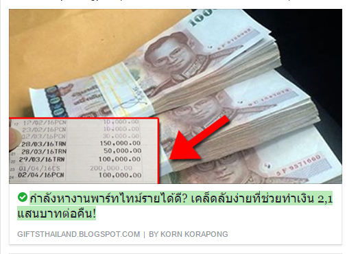 หน้าต่างที่มันโพสจะขึ้นมาแบบนี้ "กำลังหางานพาร์ทไทม์รายได้ดี? เคล็ดลับง่ายที่ช่วยทำเงิน 2,1แสนบาทต่อคืน"