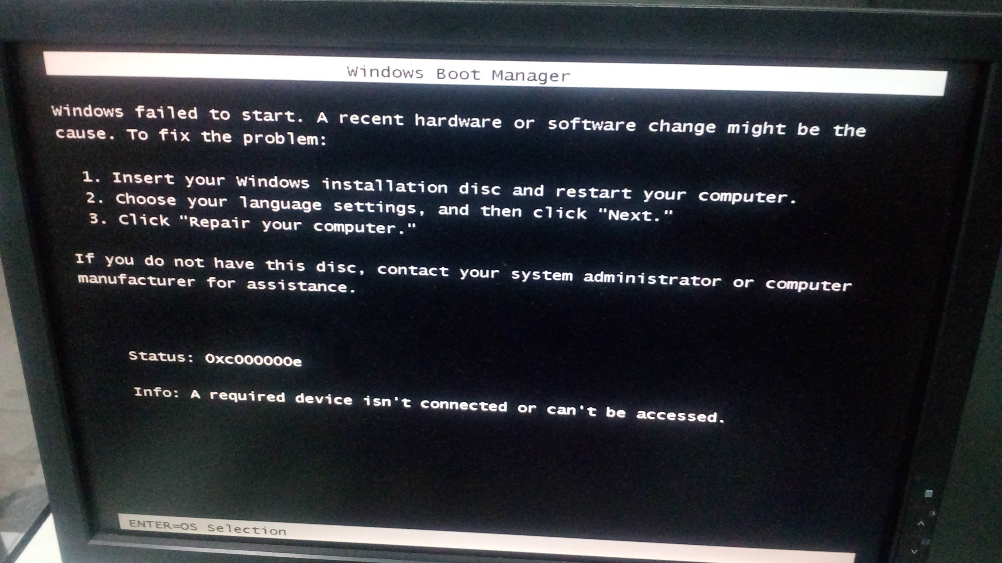 ตอนนี้เกิดปัญหาเลือกแล้วเข้าวินโดว์ไม่ได้ ขึ้นแบบนี้ครับ....