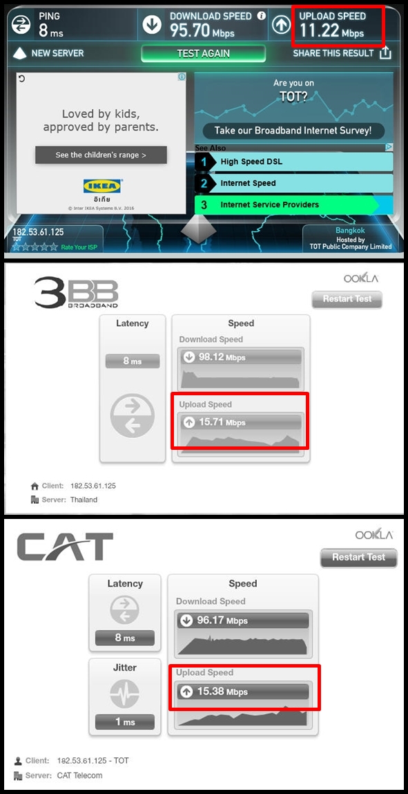 คือไม่ว่าจะเล่นเวลาไหน ค่า upload ก็ประมาณนี้ทดสอบในหลายเวพไซต์ก็เล่นได้เท่านี้ ถือว่าปกติไหมครับ แต่ตาม package ต้อง 3MB นะ ไม่รวม inter นะครับถ้า Up เวพนอกวิ่งไม่ถึง 1.5 Mbps ซึ่งปัจจุบันเน้นใช้งาน