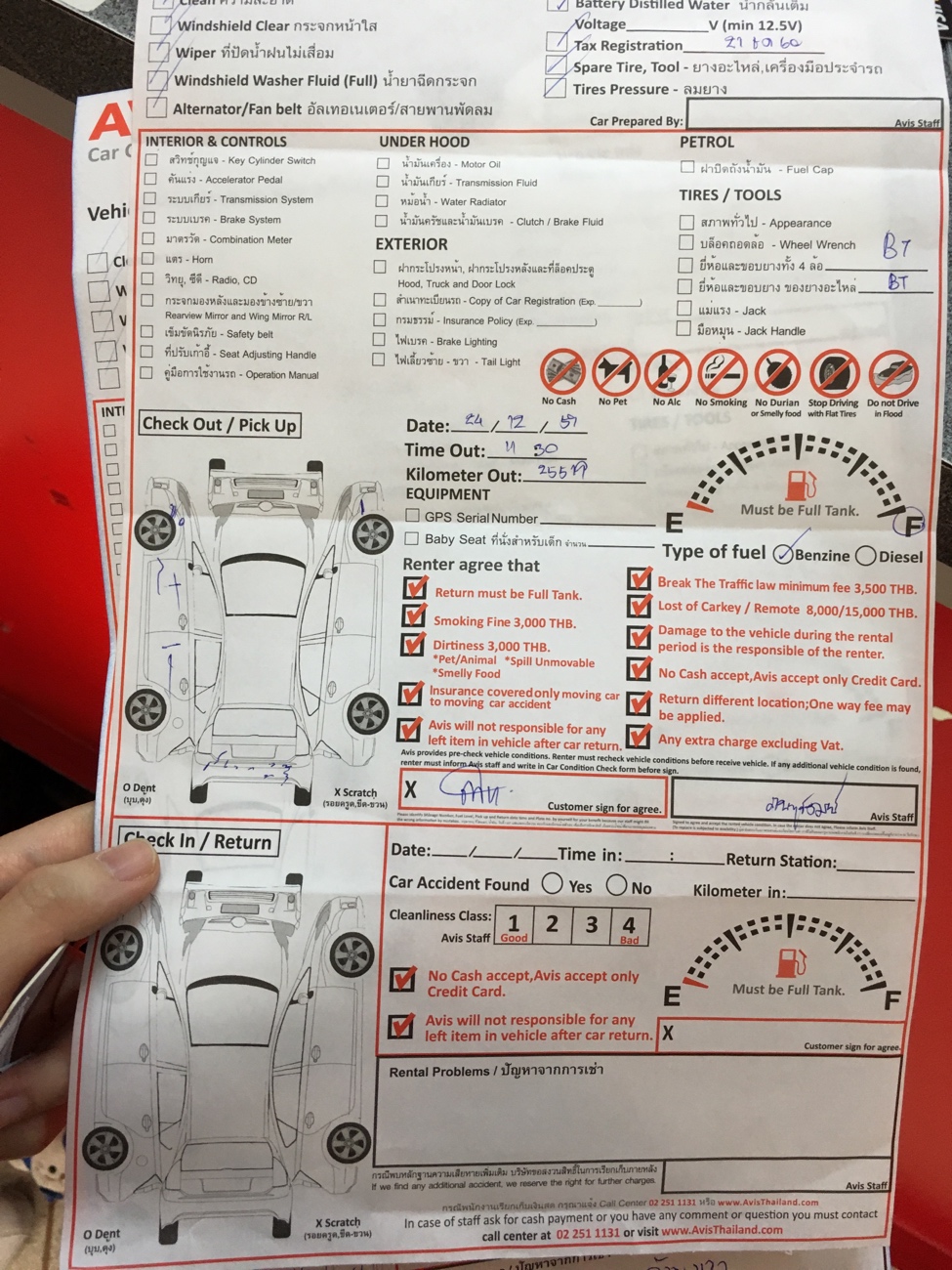 พอมาถึงจุดคืนรถ ถูๆข้างๆรถแล้วก็บอกว่า"นี่รอยยางมะตอย ไม่coverนะครับ ต้องเสียค่าปรับ3200บาท"