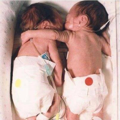 ฝาแฝดชายหญิงคู่นึง คนผู้หญิงอ่อนแอมากและกำลังจะค่อยๆตาย ทางรพ.แยกเอาทารกสองคนไว้คนละตู้อบ แต่วันนึงพยาบาลก็ยอมละเมิดกฏเพื่อให้เวลาพี่น้องได้อยู่ด้วยกัน ปรากฏว่าพอวางในตู้ปุ๊บ คนผู้ชายก็เอามือกอดคนผู้หญิงไว้ ในเวลาไม่กี่ชม.ต่อมา หัวใจของเด็กหญิงก็เริ่มเต้นคงที่และอาการดีขึ้น จนในที่สุด..ก็แข็งแรงพอที่จะ..มีชีวิตอยู่..ด้วยกัน