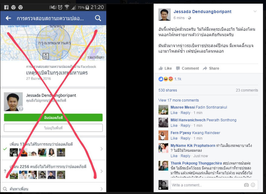 ระบบความผิดพลาดของ Facebook | facebook แจ้งเตือนให้ตรวจสอบความปลอดภัยจากเหตุระเบิดใน กทม.!