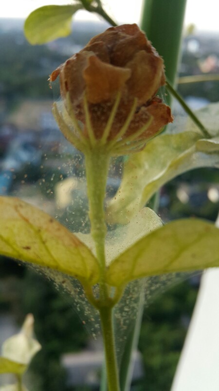แบบนี้ใช่เพลี้ยรึเปล่าครับ? ใบไม้มีความเหนียวไปหมดแล้ว ดอกชบาที่ขึ้นมาก็สีซีดดอกเล็ก ตอนนี้ไม่ขึ้นดอกใหม่มาอีกเลย ใบไม้เหลืองเต็มไปหมด