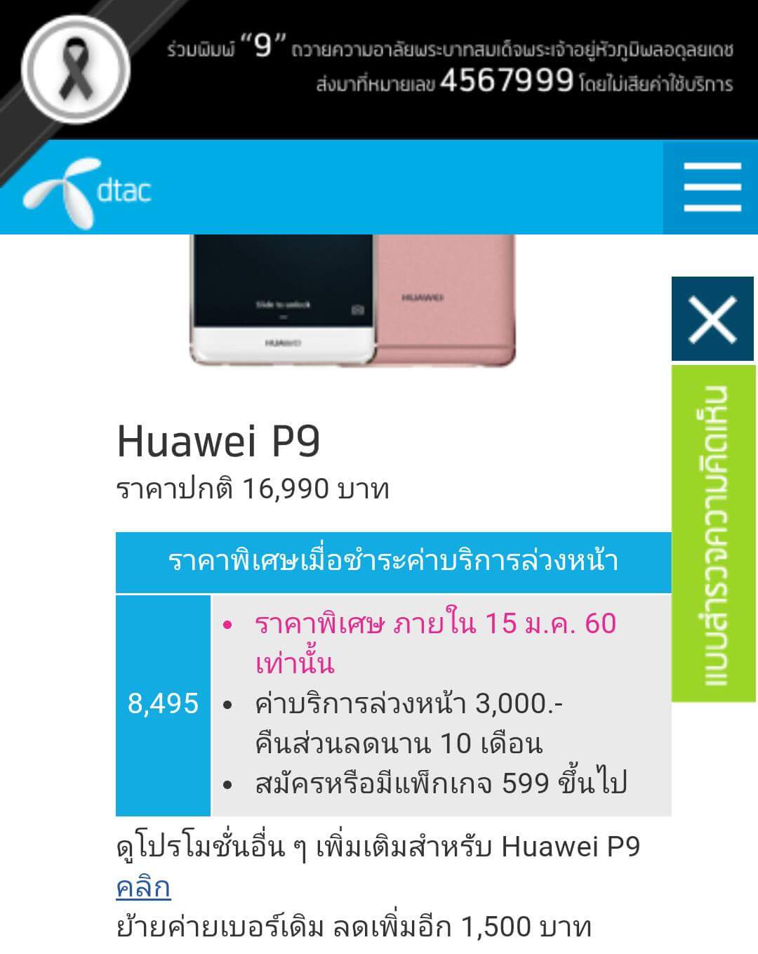 สำหรับเครื่องราคาพิเศษ Huawei P9 ราคาพิเศษถึง 15 ม.ค. 2560 ค่ะ