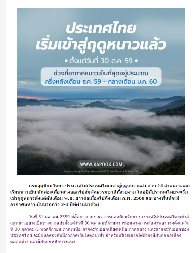 !!.....รู้ยังประเทศไทยเข้าสู่หน้าหนาวแล้ว และจะหนาวกว่า2-3ปีที่ผ่านมาด้วย...!!