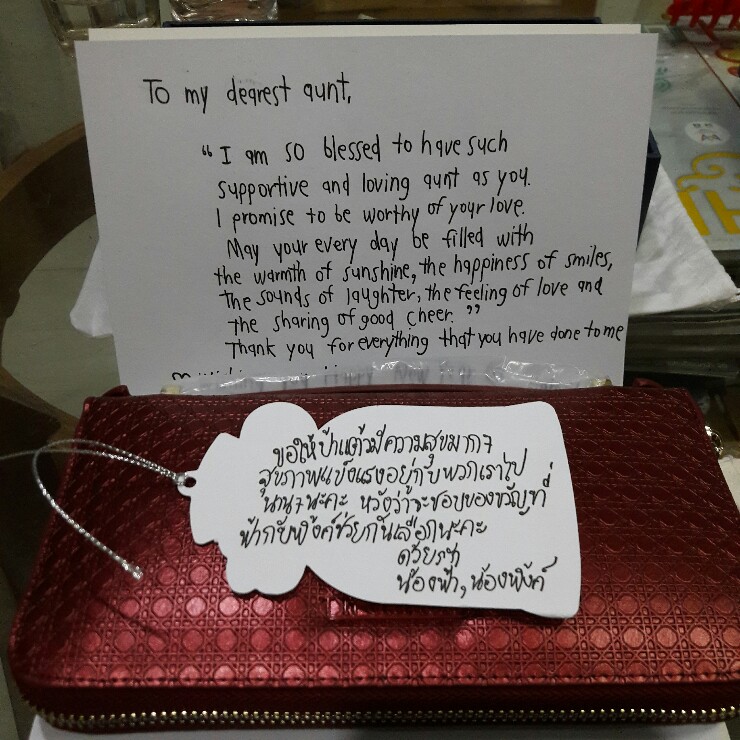ซึ่งยับเยินมากแล้วเท่านั้น แต่ลองอ่านการ์ด อวยพรที่เค้าเขียนมาให้พร้อมกับของขวัญก็จะเข้าใจได้ว่าทำไมปีใหม่ปีนี้ถึงเป็นปีที่ป้ากับลุงมีความสุขมาก