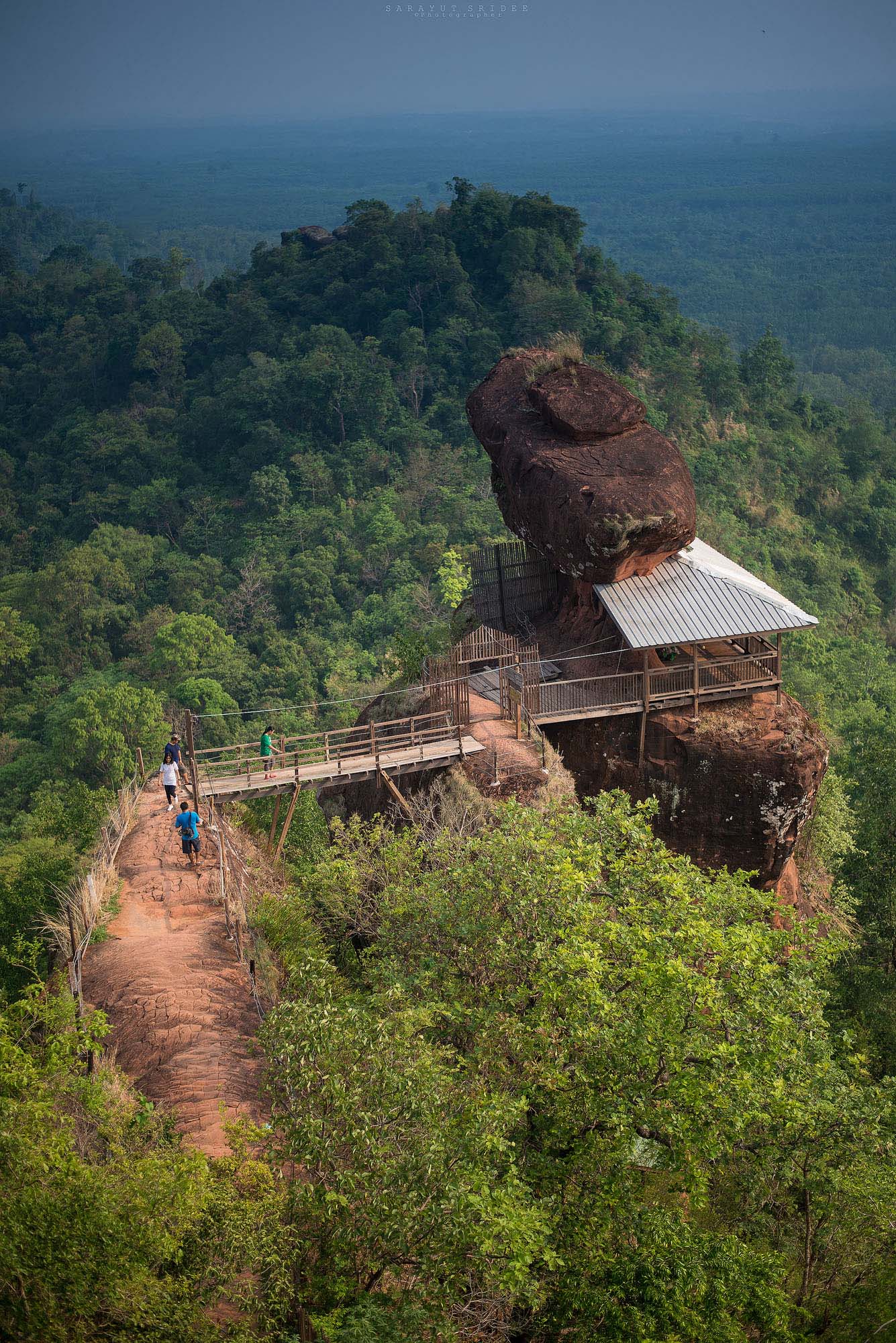จุดเด่นของที่นี่คือ มีสะพานไม้และบันไดสามารถขึ้นชมทัศนียภาพรอบๆภูทอกได้แบบ 360