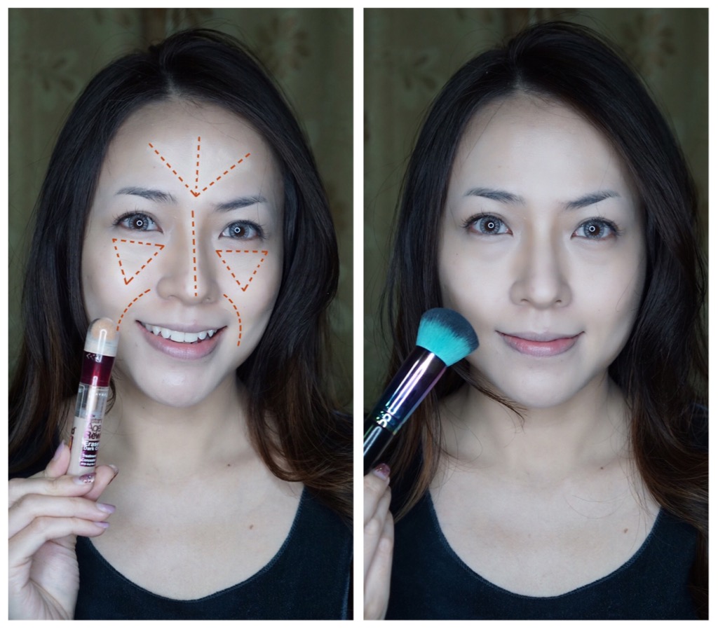 - ใช้แปรงเกลี่ยให้คอนซีลเลอร์เนียนไปกับผิวอย่าให้เกินกรอบออกมานะคะ