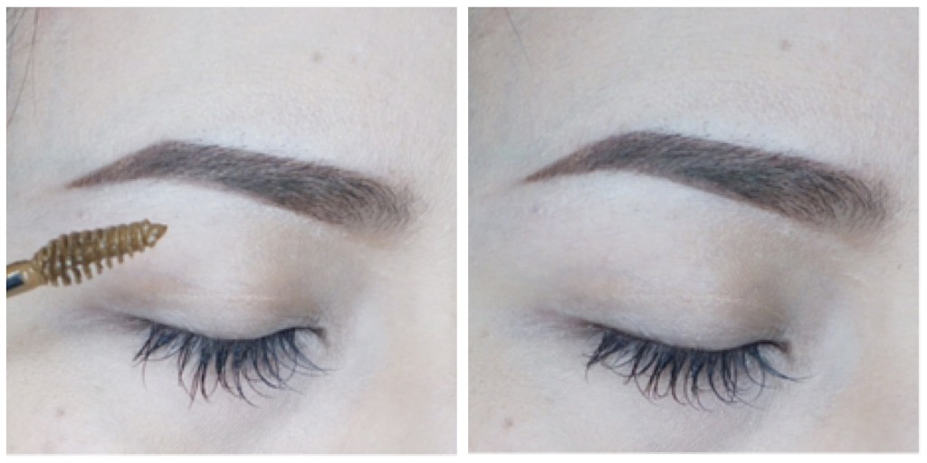 - ใช้มาสคาร่าคิ้วปัดบริเวณหัวคิ้วถึงกึ่งกลางคิ้ว เพื่อปรับให้สีคิ้วดูอ่อนลง เป็นอันเสร็จเรียบร้อยสำหรับส่วนของคิ้ว