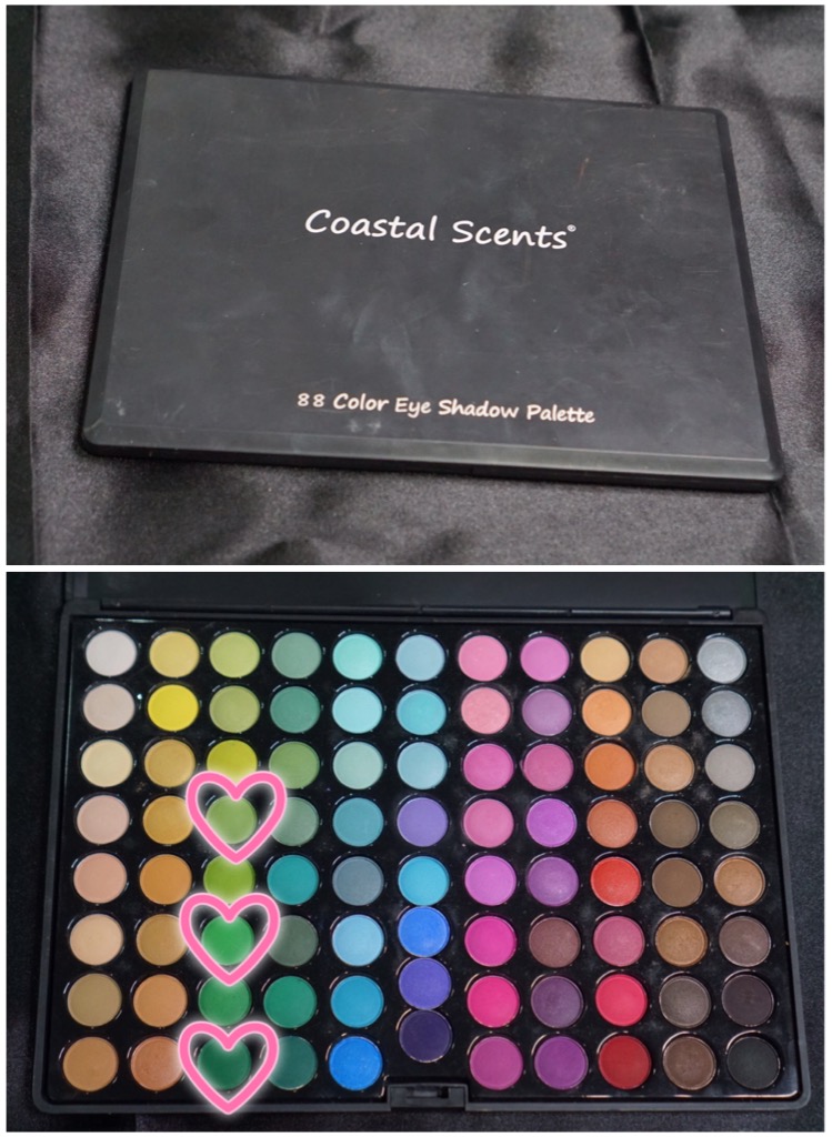 - จากนั้นใช้ Coastal Scents 88 Color Eye Shadow Palettes สี 1-2-3 ไล่สีเข้มมาอ่อนจากบริเวณโคนใบไปจนถึงปลายใบเพื่อให้ใบดูมีมิติ จากนั้นแต้มกาวในบริเวณที่เราจะติดกลิตเตอร์ จากนั้นแต้มกลิตเตอร์ในบริเวณที่เราทากาวไว้
