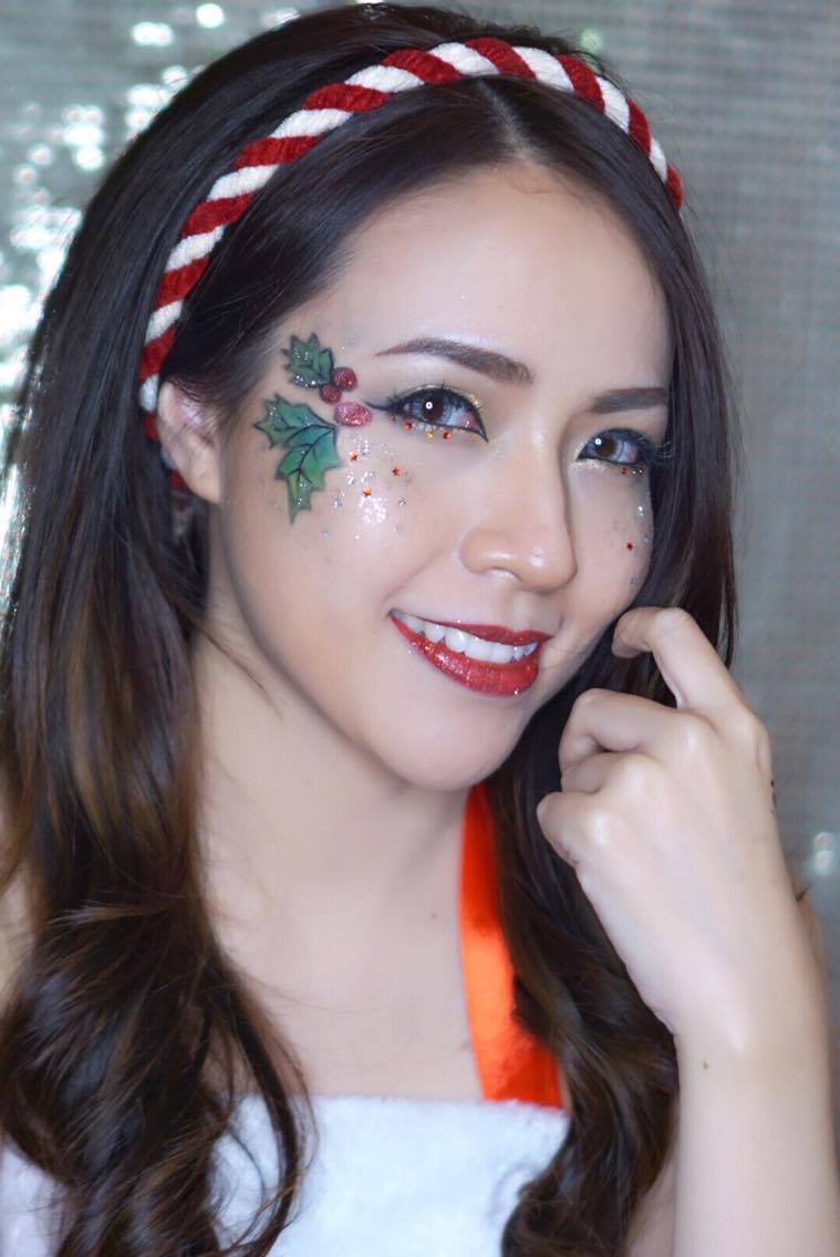 -ใช้ glitter สี COPPER ติดทับบนลิปสติกสีแดงที่ทาไว้ให้ทั่ว เสร็จเรียบร้อยแล้วคร่า เราไปเปลี่ยนชุด ทำผมให้เป็น Santy กันเลยคะ