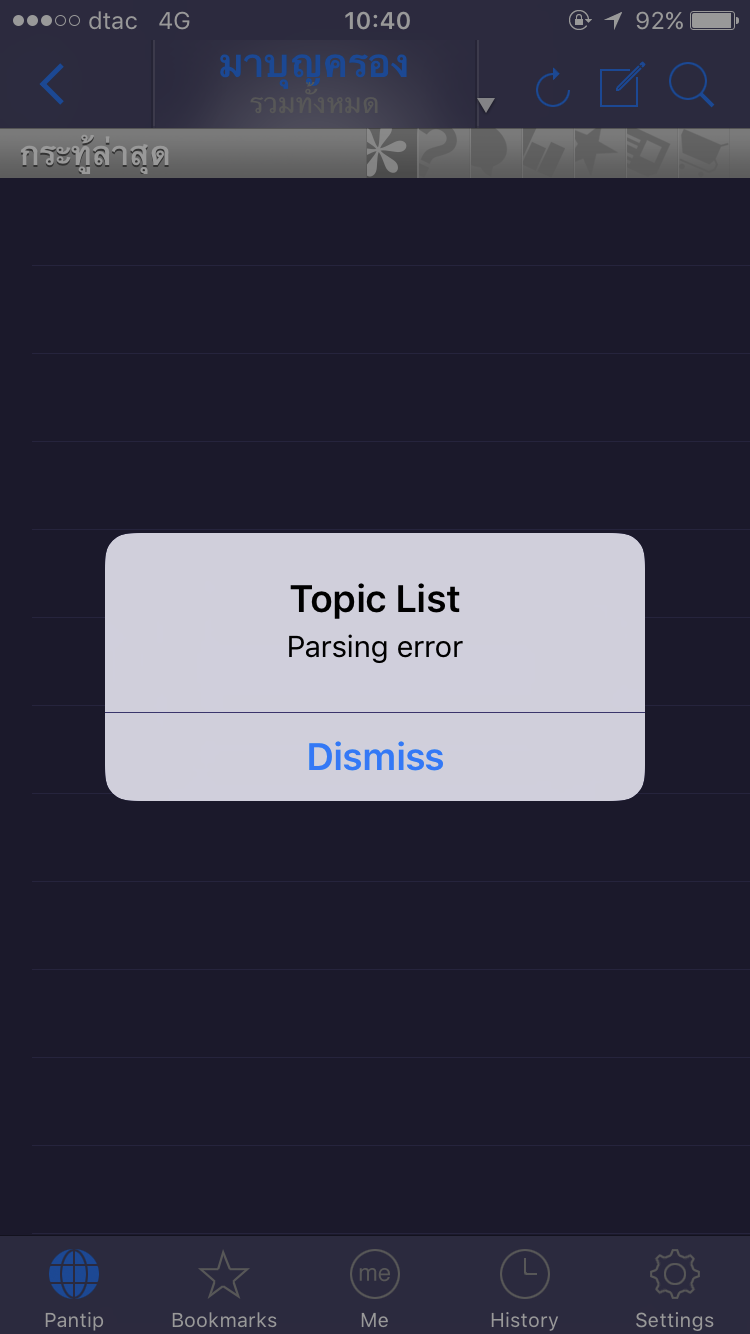 เข้าเวปพันทิพมีในไอโฟนเจ็ดพัสไม่ได้ครับมันขึ้นข้อความว่าTopic List Parsing error Dismiss เป็นมา2วันแล้วต้องแก้ไขอย่างไรครับ