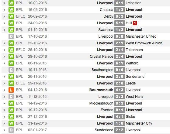 ..... ผลงาน 20 นัดล่าสุดของลิเวอร์พูล ชนะ 15 เสมอ 4 แพ้ 1 .....